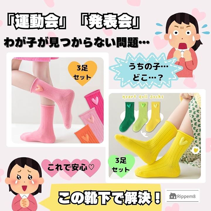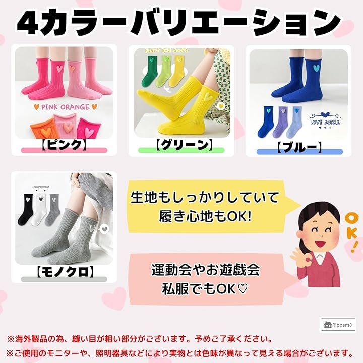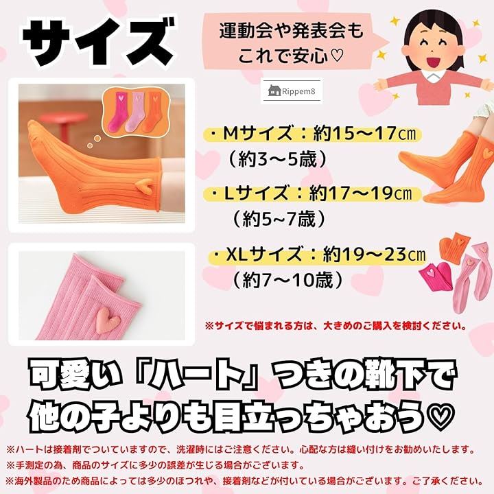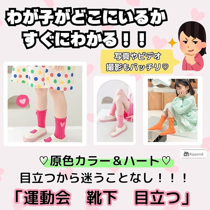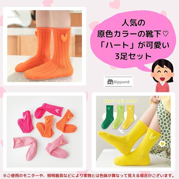 運動会 靴下 目立つ ネオンカラー キッズ 女の子 蛍光 原色 ハート 3足セット