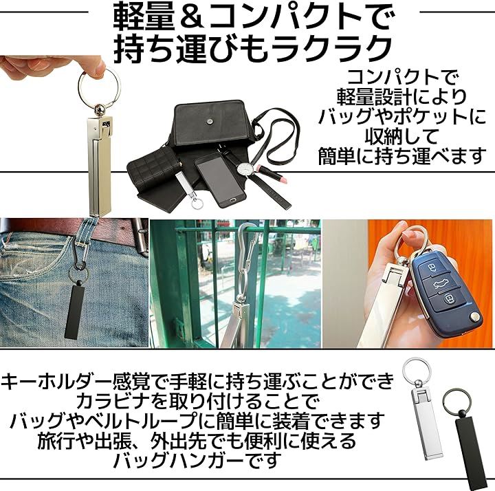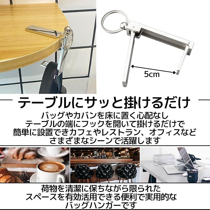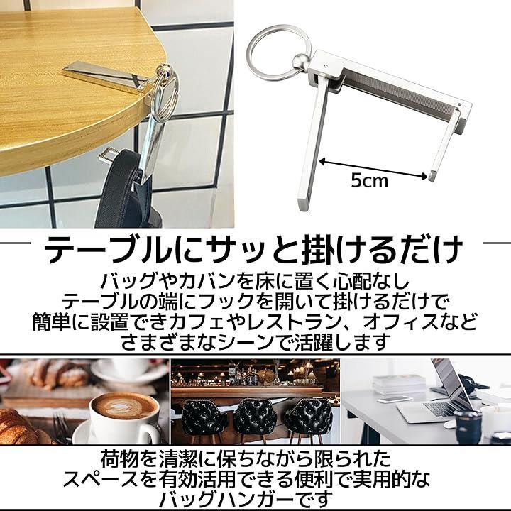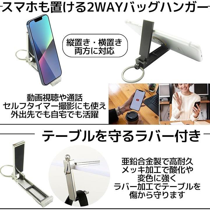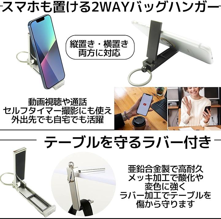 バッグハンガー テーブルフック スマホスタンド カバン キーホルダー 机 出張 旅行 便利グッズ シルバー