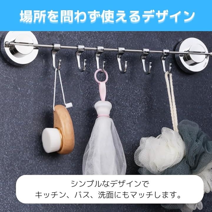 キッチンツールフック 収納 台所 キッチン用品 タオル掛け ステンレス製 強力吸盤タイプ 工具不要 バスルームや洗面にもOK