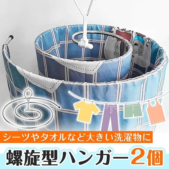 ぐるぐるシーツハンガー バスタオル 複数枚干し スパイラル型 通気性 落下防止 2個セット