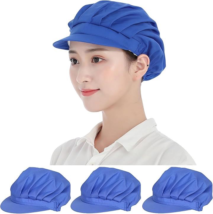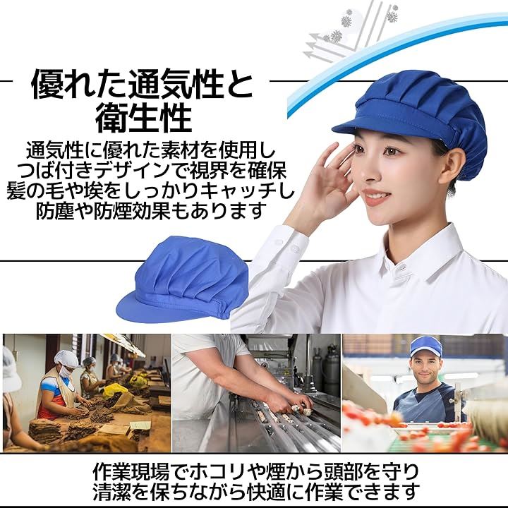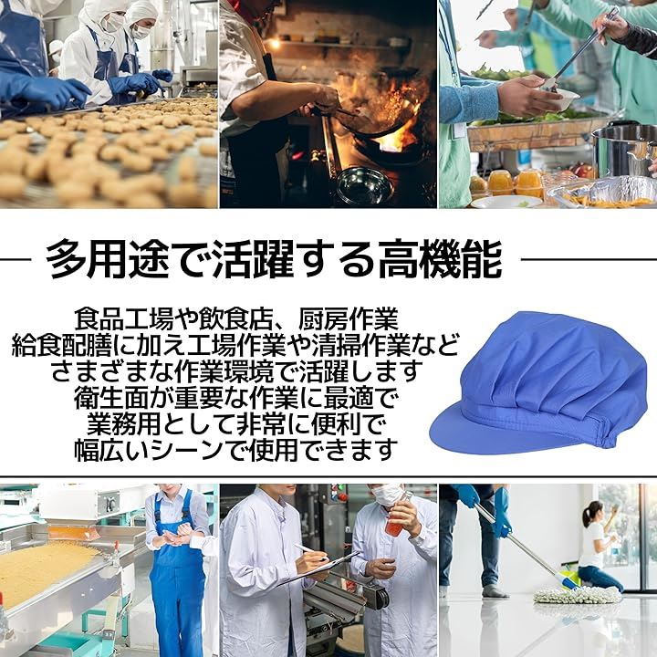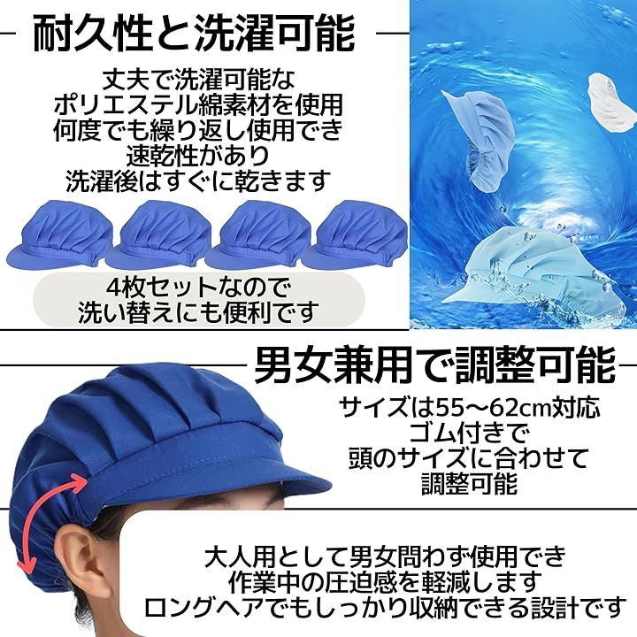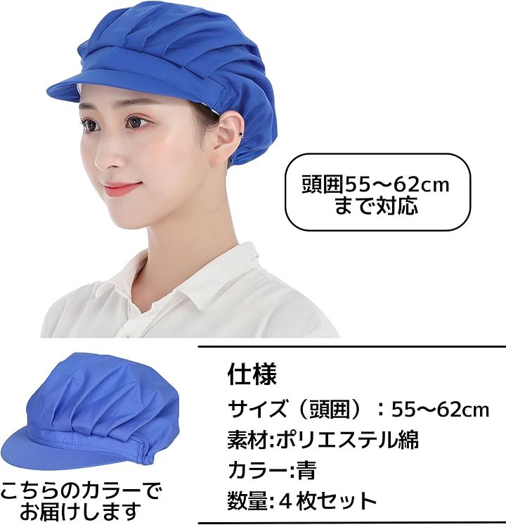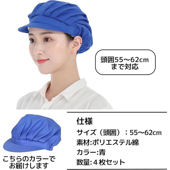 コック帽 衛生キャップ 作業帽子 給食 厨房 大人用 男女兼用 ヘルメット 防塵 防煙 洗える 4枚セット 55-62cm 青