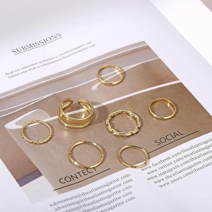 リング 指輪 7点セット 編み目 ロープリング 二股 シンプル レディースリング セット売り 重ね付け アクセサリー