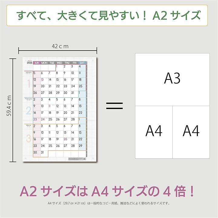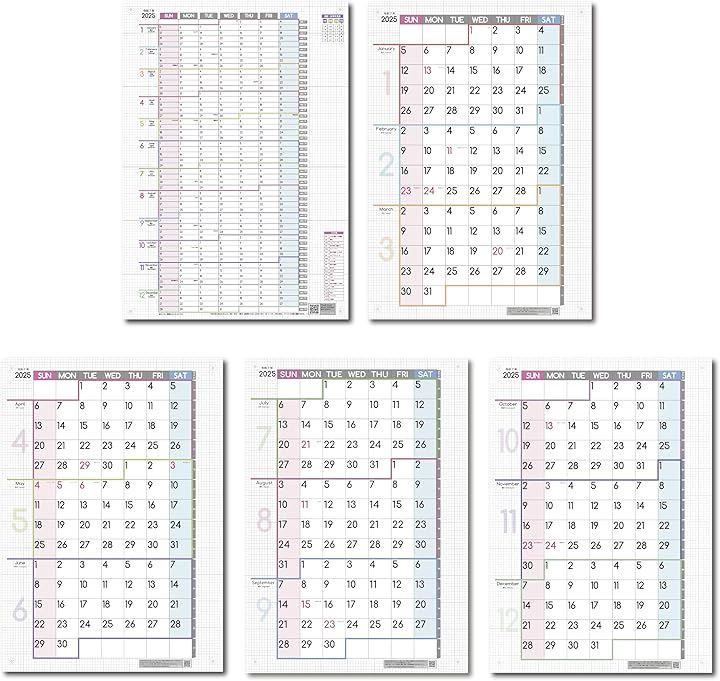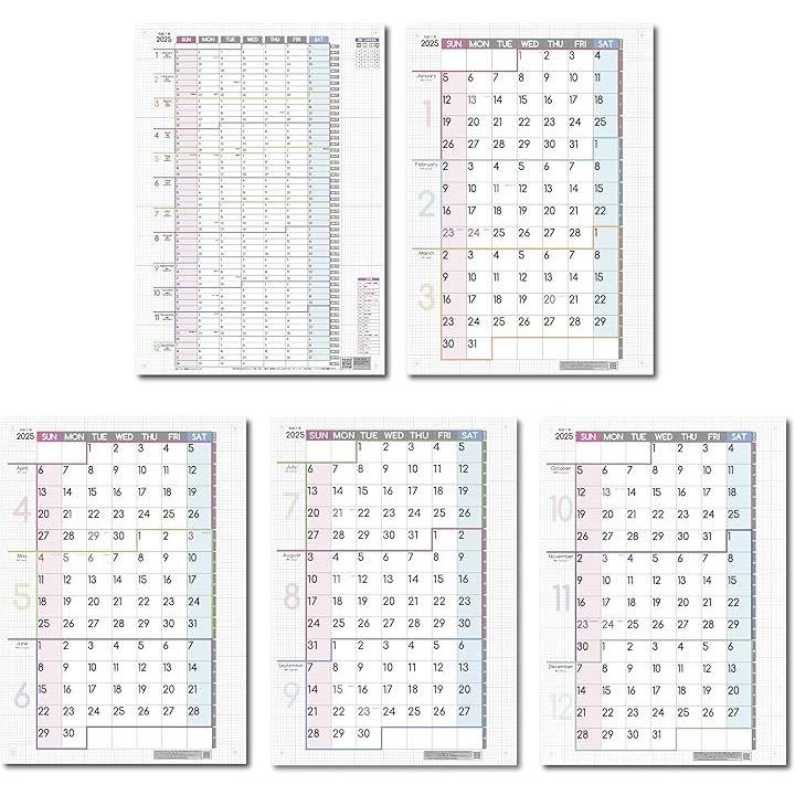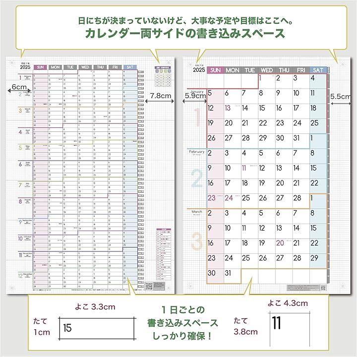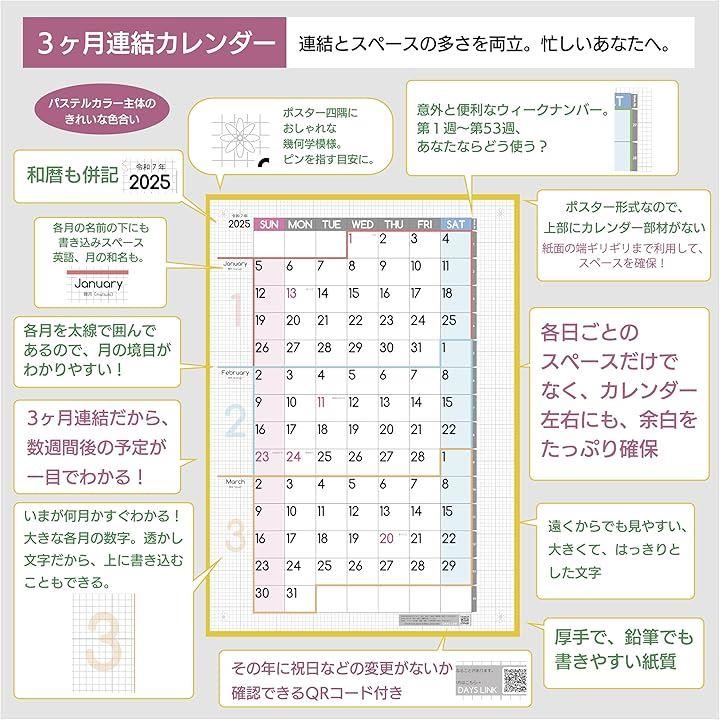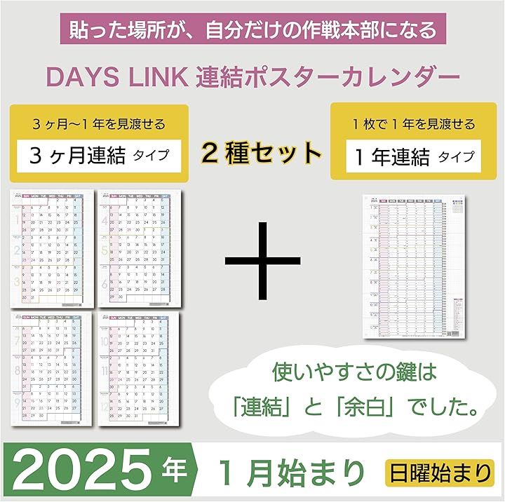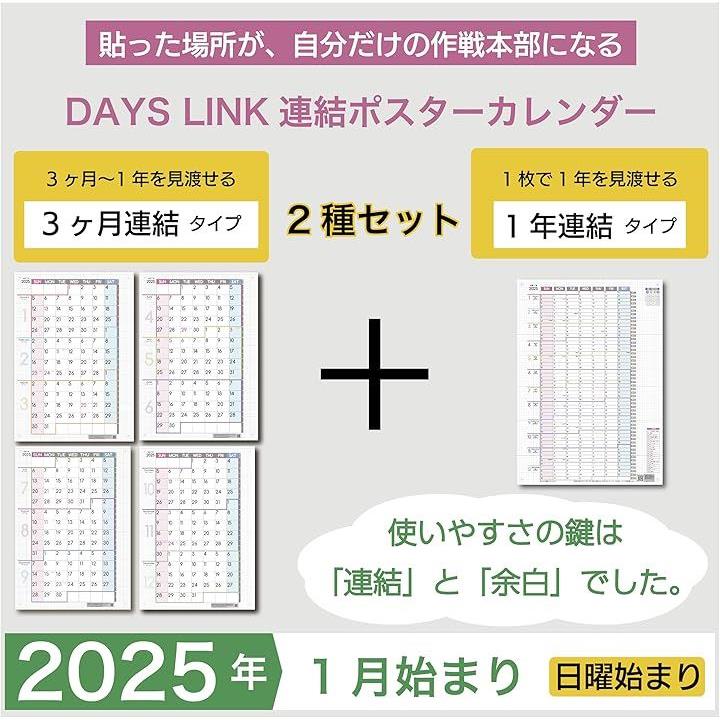 3ヶ月連結 & 1年連結 ポスターカレンダー イヤープランナー 令和7年 2025年1月 日曜始まり