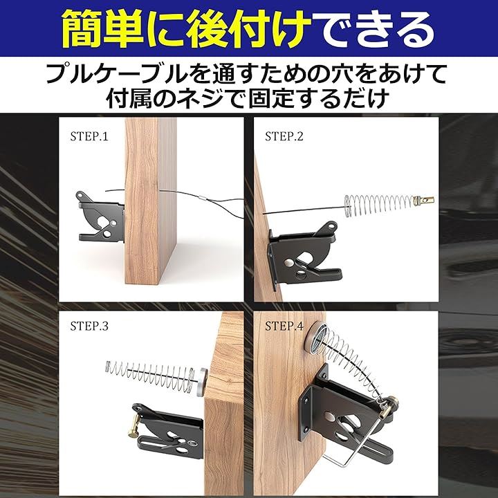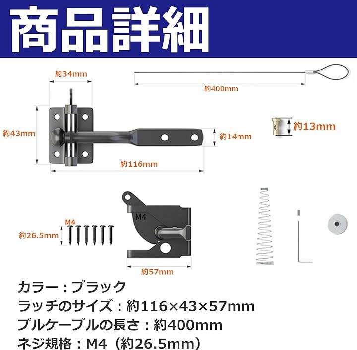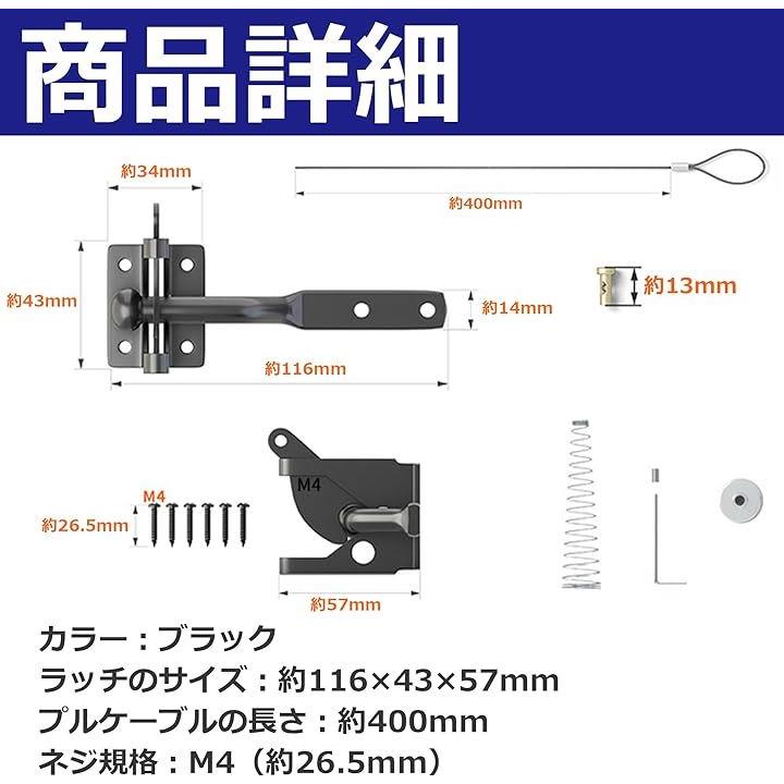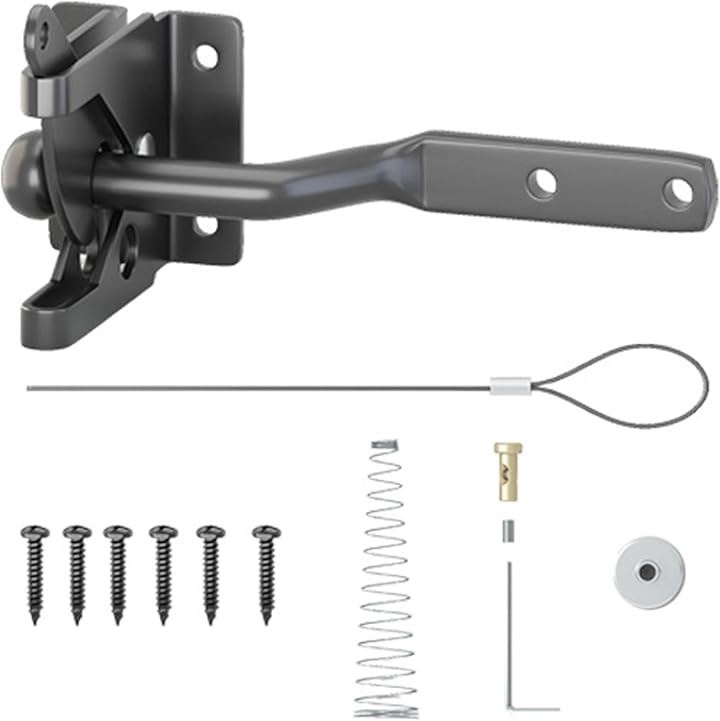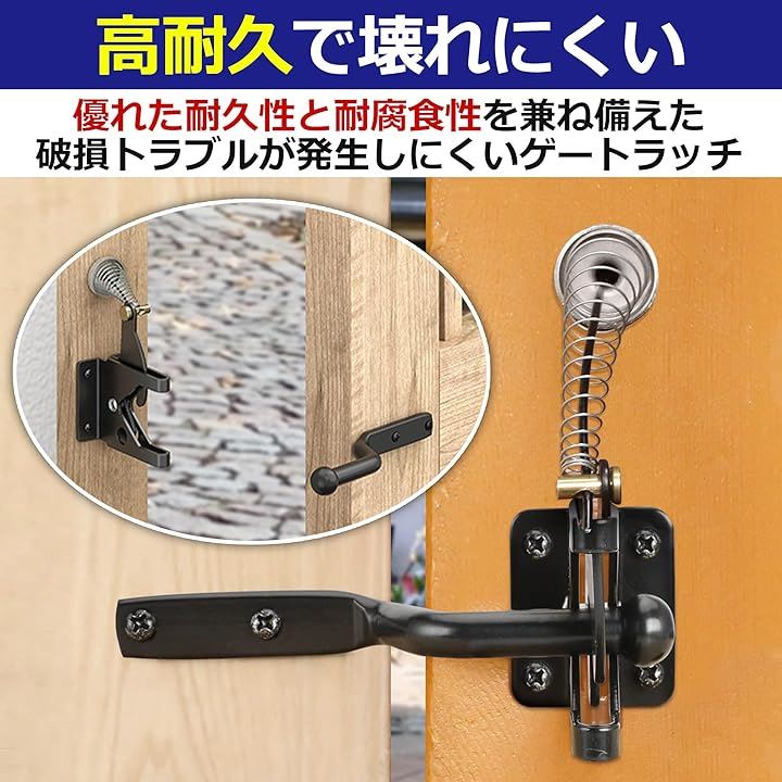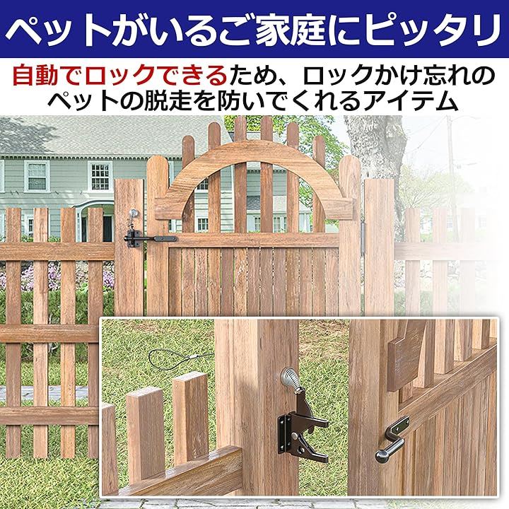 EdisonBrain セルフロック ゲート用 自動 重力ラッチ フェンス 後付け 高耐久 カーボンスチール スプリング 屋外 調節可能なゲートラッチケーブルプル付き ペット脱走防止 ロックかけ忘れ対策