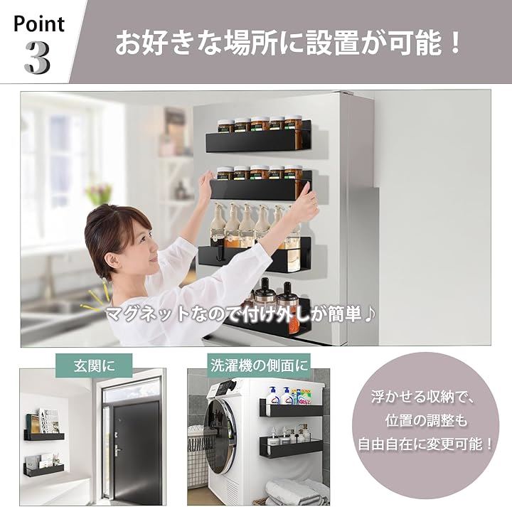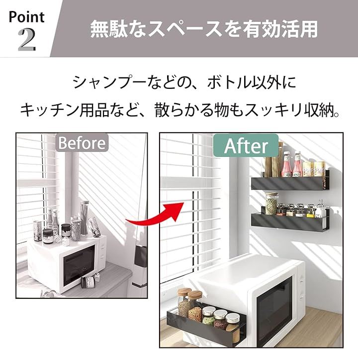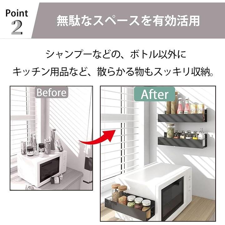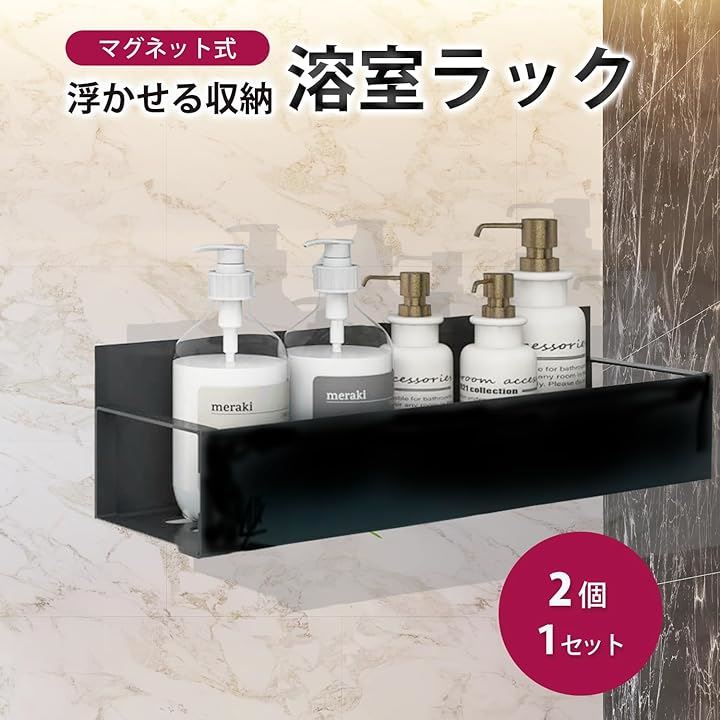 マグネット 収納 浴室 ラック お風呂 オシャレ 浮かせる収納ブラック2個セット