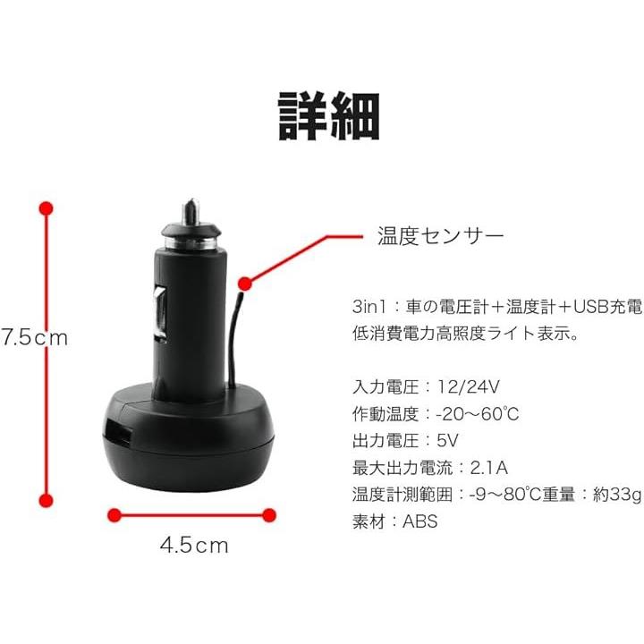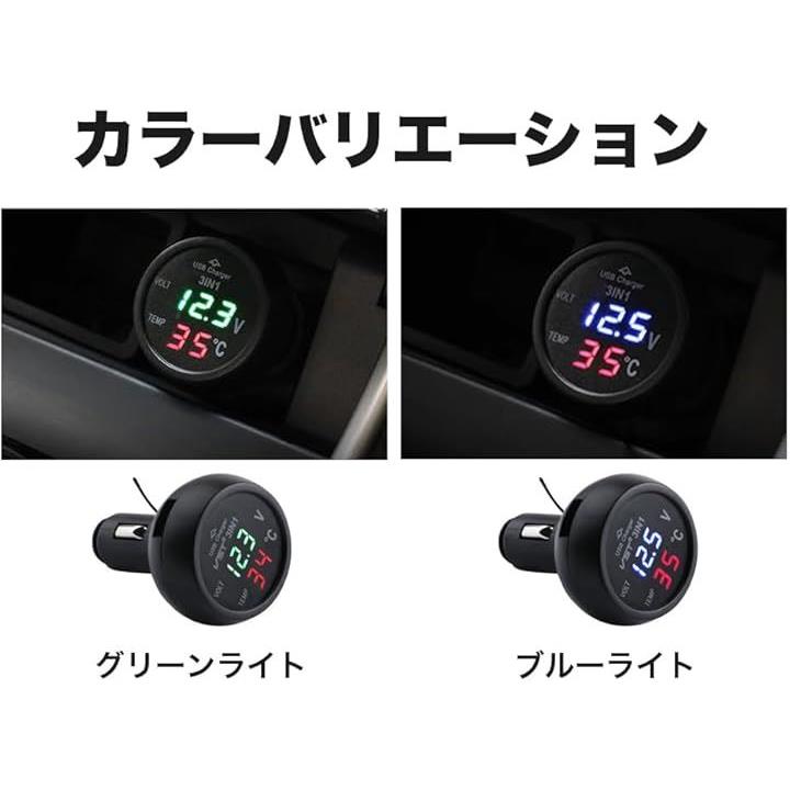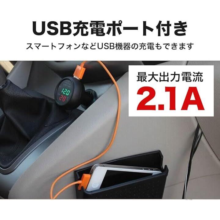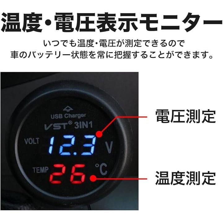 シガーソケット デジタル 電圧 温度 USBカーチャージャー バッテリーチェッカー シガーライター 車 車内 12V 24V