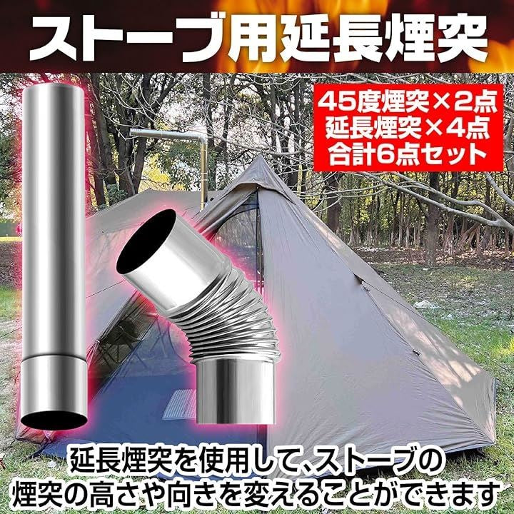 薪ストーブ 煙突 ステレスパイプ セット キャンプ 曲げ ジョイント 汎用