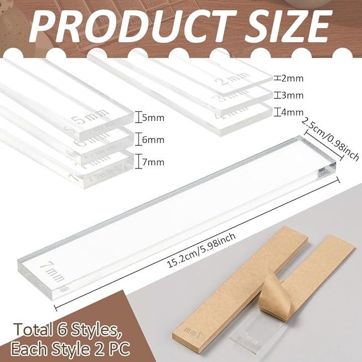 12個 アクリルルーラー ポリマークレイ深さガイドセット 粘土の厚さ定規 アクリル粘土深さガイド 6サイズ 陶器ポリマー粘土 陶器ツール 粘土ルーラー 2/3/4/5/6/7mm