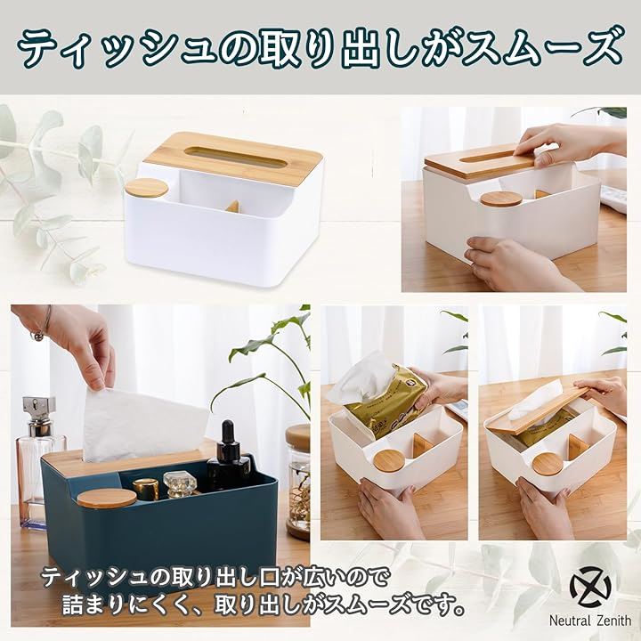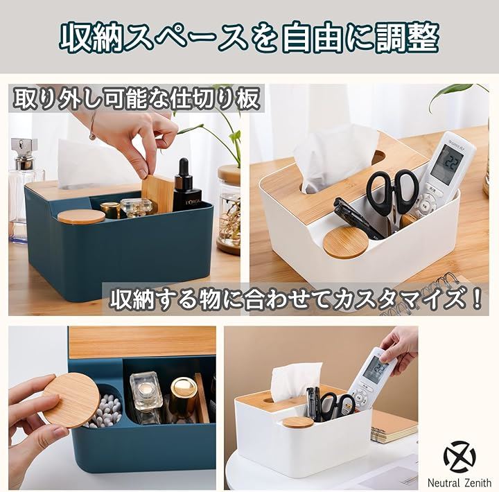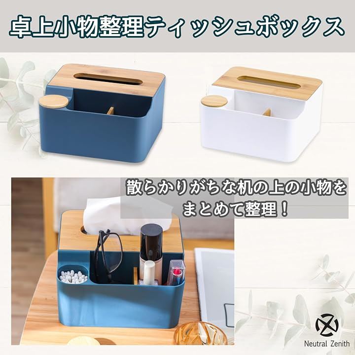 ティッシュボックス リモコン 収納 卓上収納 小物入れ ソフトパックティッシュ リビング 寝室 オフィス ネイビー