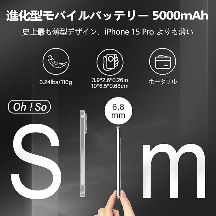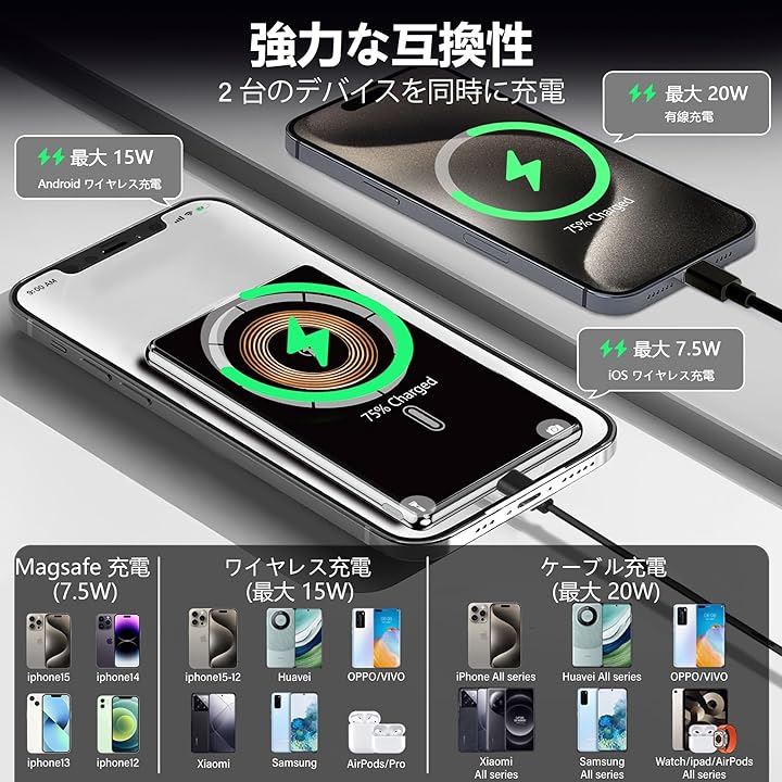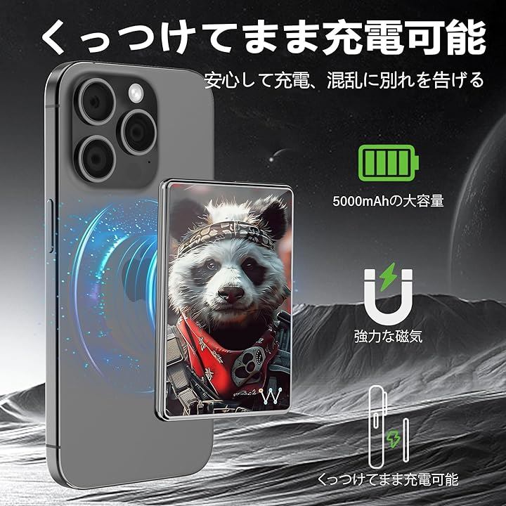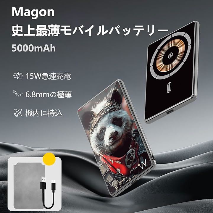 「互換品」LUCKYDUO Magon モバイルバッテリー 軽量 6.8MM 薄型 マグネット式ワイヤレス充電 5000mAh PD20W USB-c出力 モバイルバッテリー ワイヤレス出力(15W for Android/7.5W for iPhone)/USB-C入出力/PSE認証済み LED残量表示 |