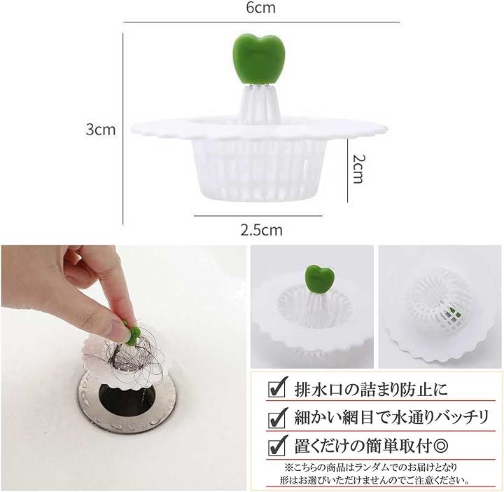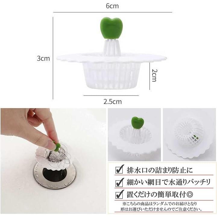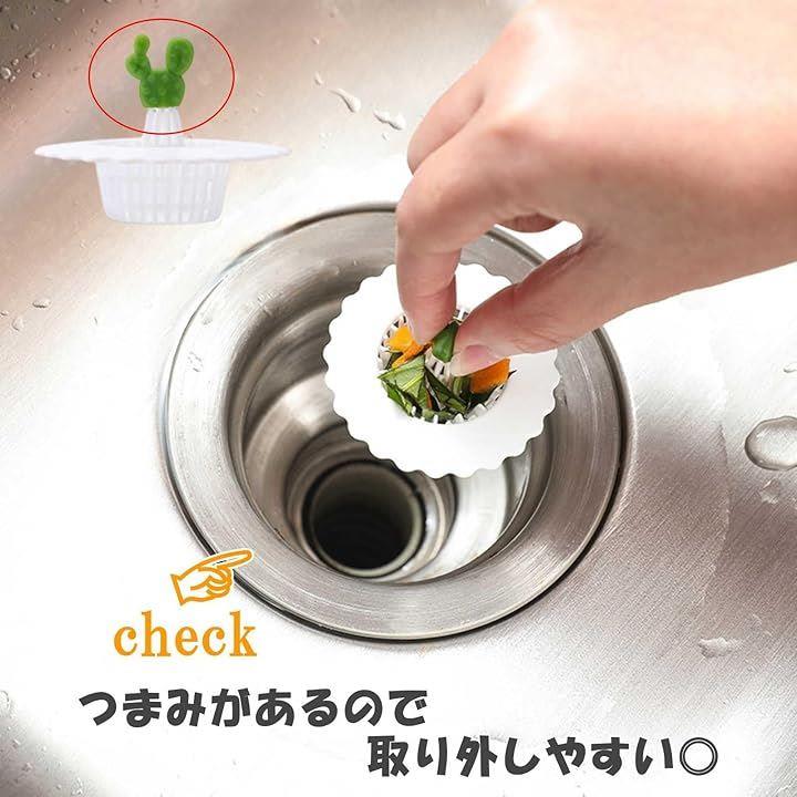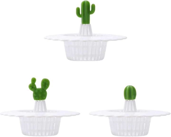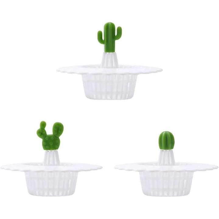 洗面台用 排水口カバー 3個セット ランダム サボテン つまみ付き ゴミストッパー ゴミ受け フィルター