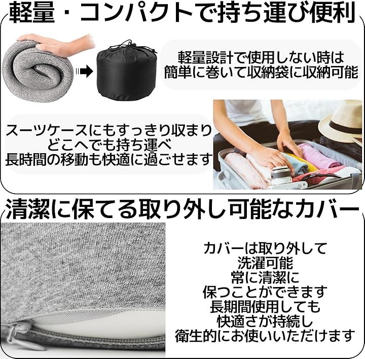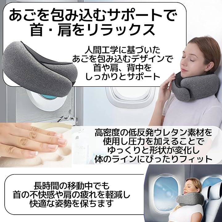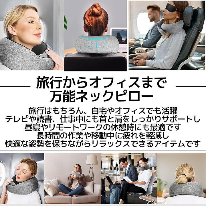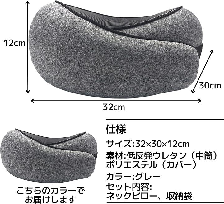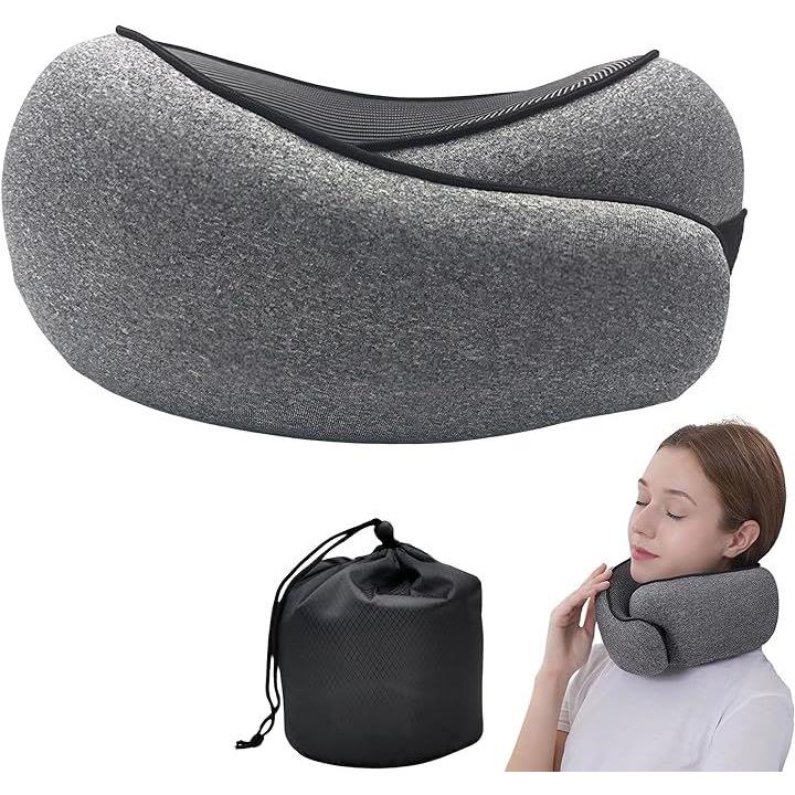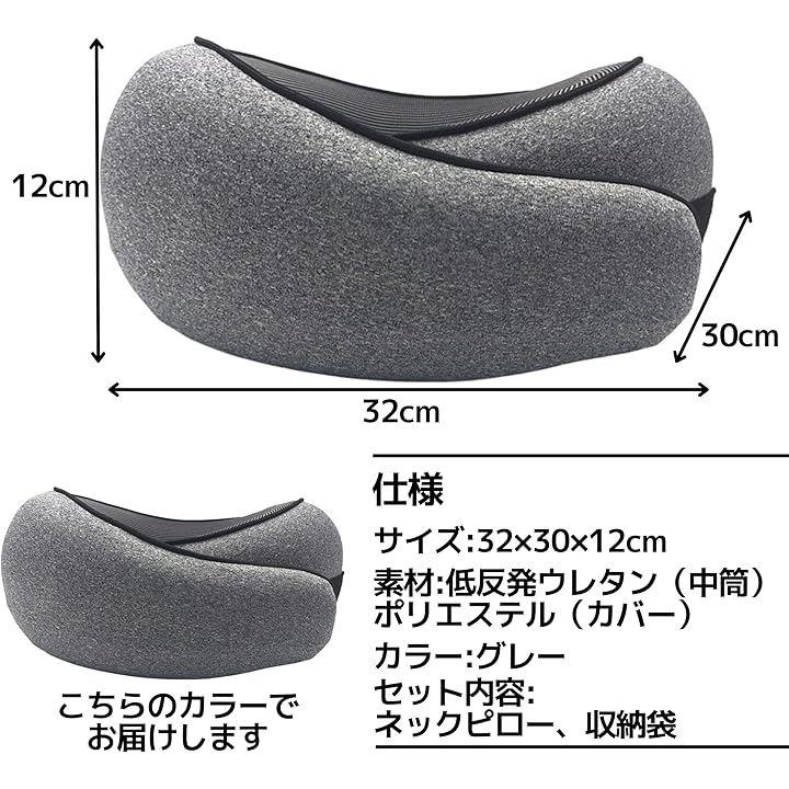 ネックピロー 首枕 トラベルピロー U字型 低反発 コンパクト カバー洗濯可 飛行機 夜行バス 収納袋 付き グレー