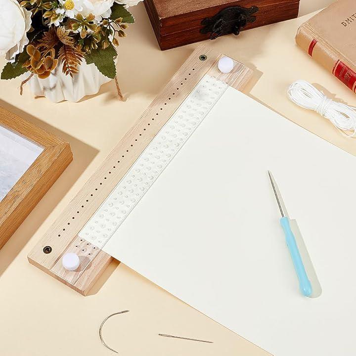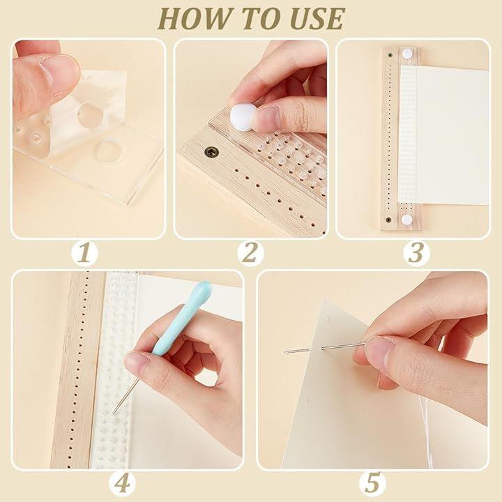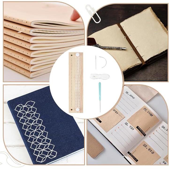 8点 製本ツール キット木材 アクリル板 糸 曲がった針 プラスチック製ネジ縫い針 製本ピン製本キット紙 DIY クラフト製本用品