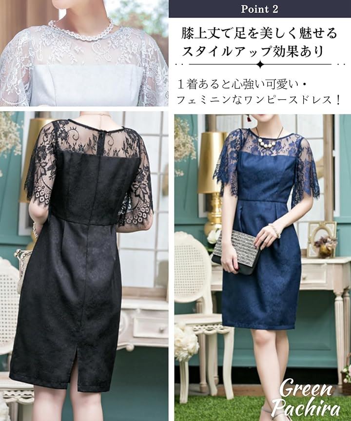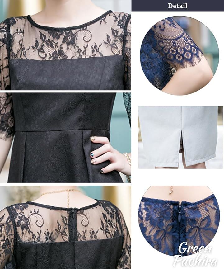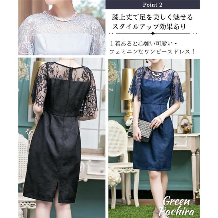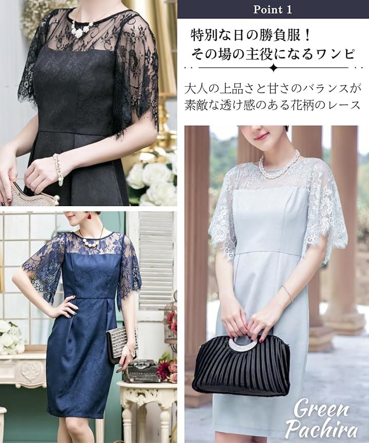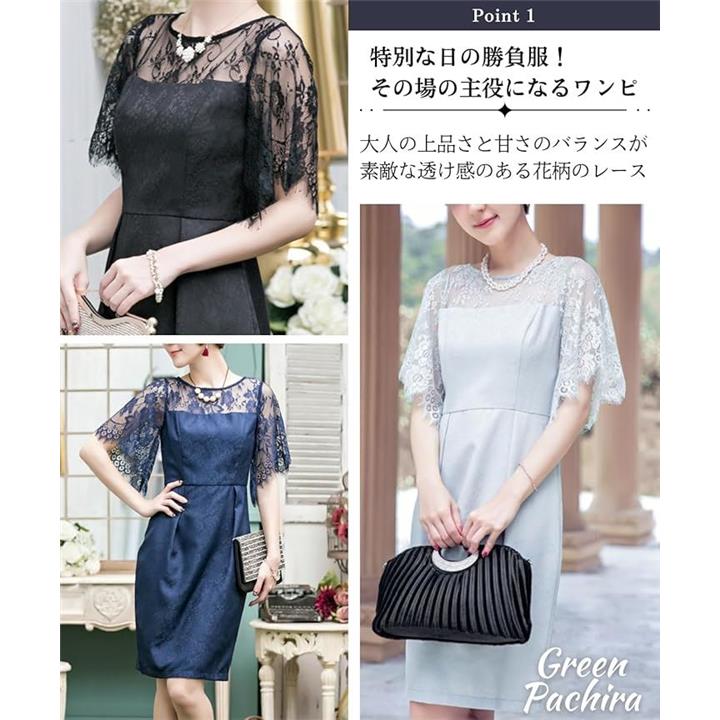 [グリーンパキラ] キレイめ 花柄 ワンピース レースドレス 可愛い パーティードレス 半袖 膝上 春 夏 秋 フォーマル 高見え 20代 30代 40代 |