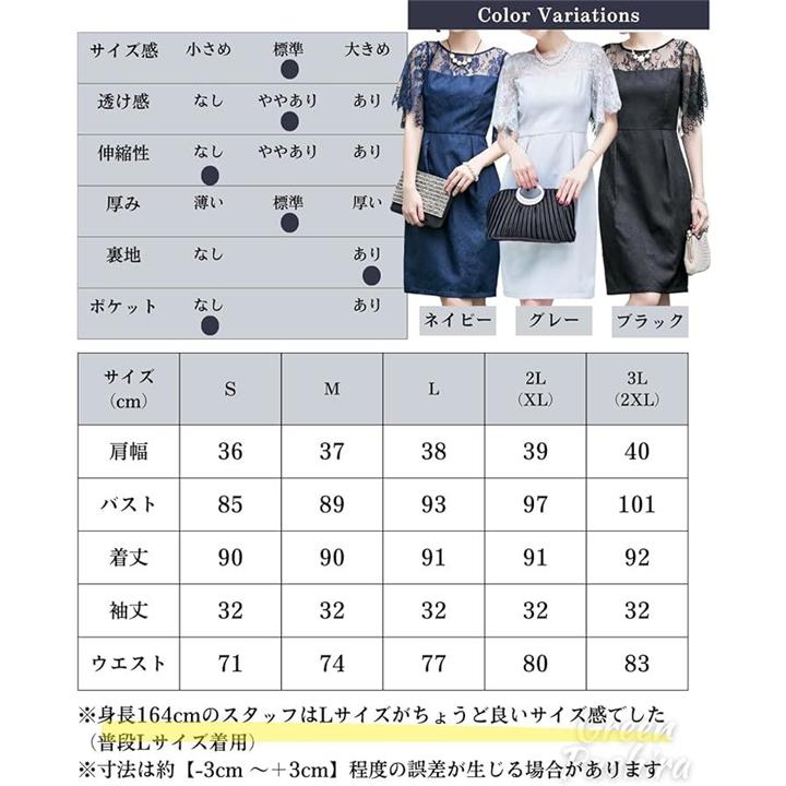 3Lサイズ:肩幅 約40cm/バスト 約101cm/着丈 約92cm/袖丈 約32cm /ウエスト 約83cm 。
