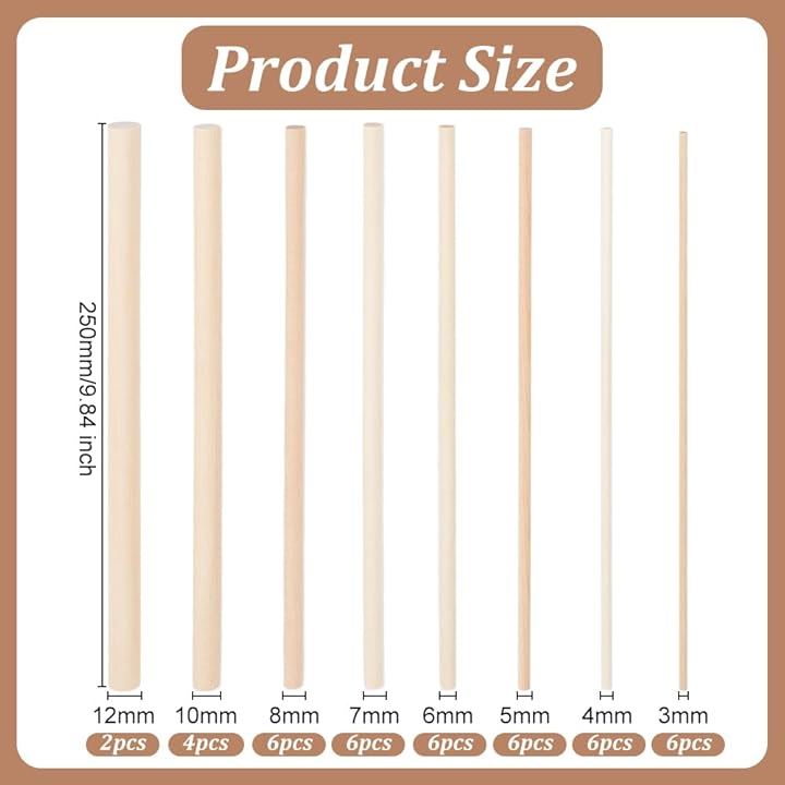 42本 丸棒材 3/4/5/6/7/8/10/12mm 長さ250mm 8サイズ 木製 木材 木棒 スティック棒 クラフト モデリング ハンドメイド ホビー用 手作り DIY工具 手芸用 DIYモデル