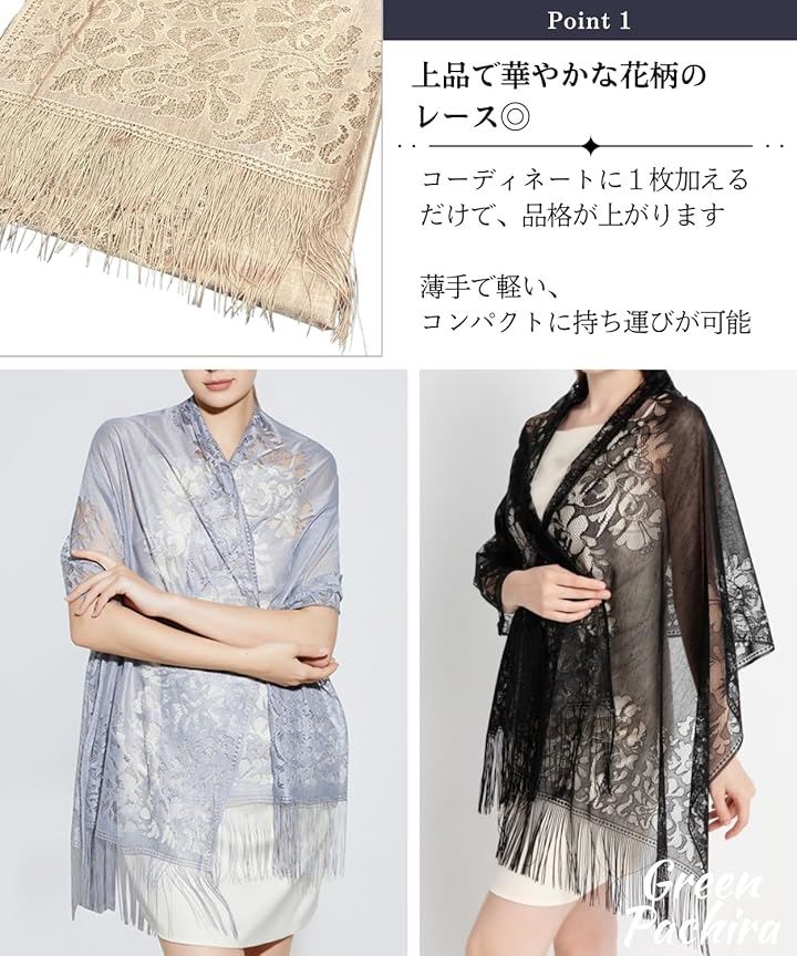 [グリーンパキラ] フォーマル ストール レディース 可愛い レース 花柄 春夏 大判 薄手 軽い 結婚式 誕生日 プレゼント |