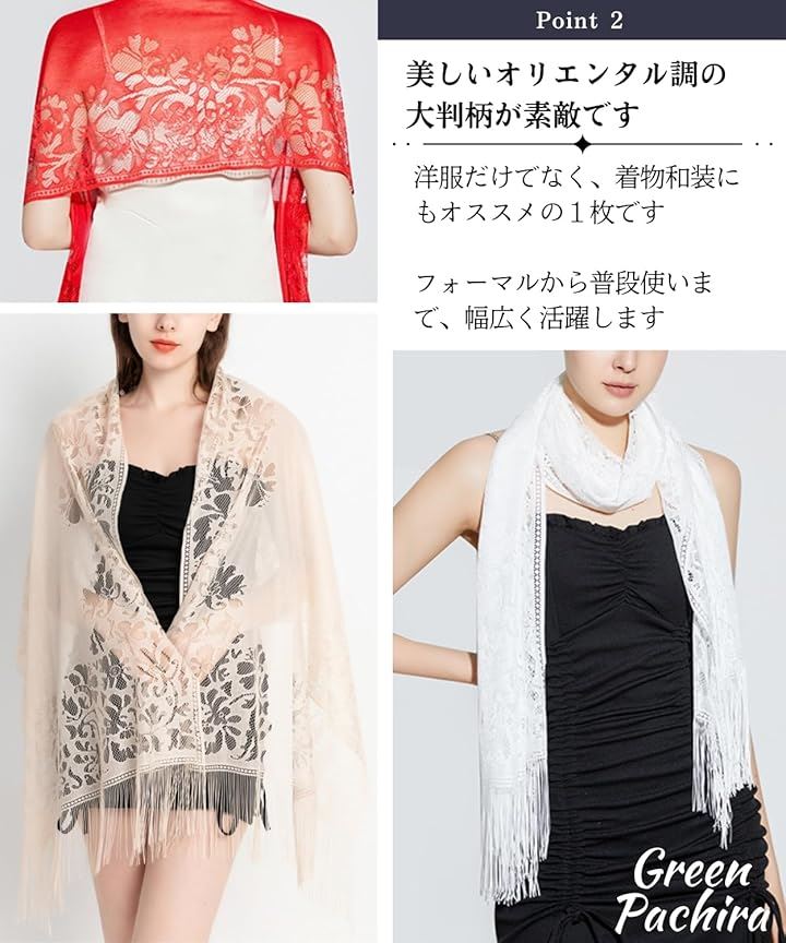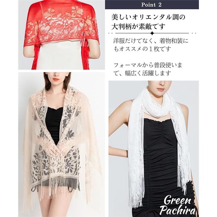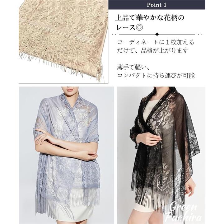 [グリーンパキラ] ショール レース 羽織 レディース ストール 結婚式 大判 冷房対策 肩掛け 普段使い パーティー お呼ばれ フォーマル 薄手 花柄 誕生日 プレゼント ギフト 上品 きれいめ 無地 可愛い |