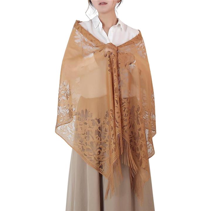 四方に施されたオリエンタル調のフラワー柄のレースは、大判で美しく着物和装に合わせるのもオススメです。