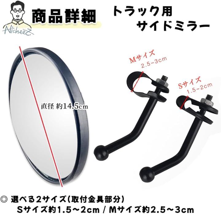 トラック サイドミラー アンダーミラー 補助ミラー 死角 バックショット 後方確認 左右兼用 丸型