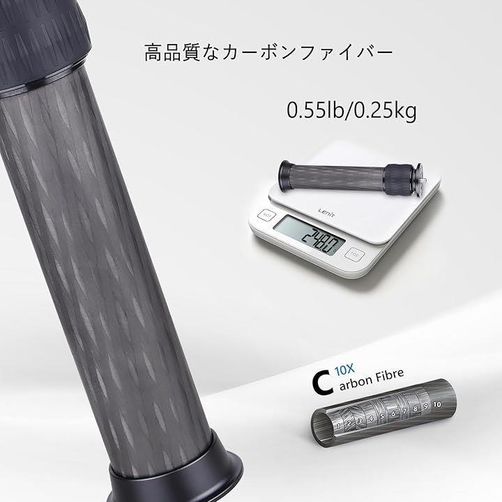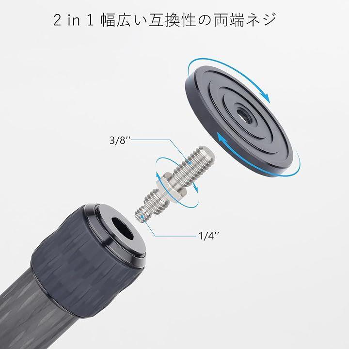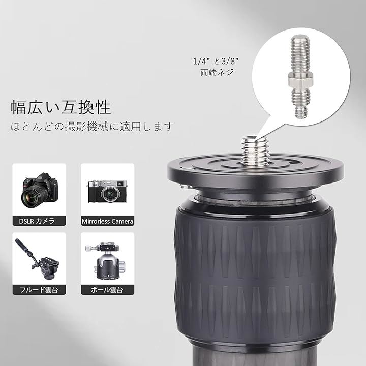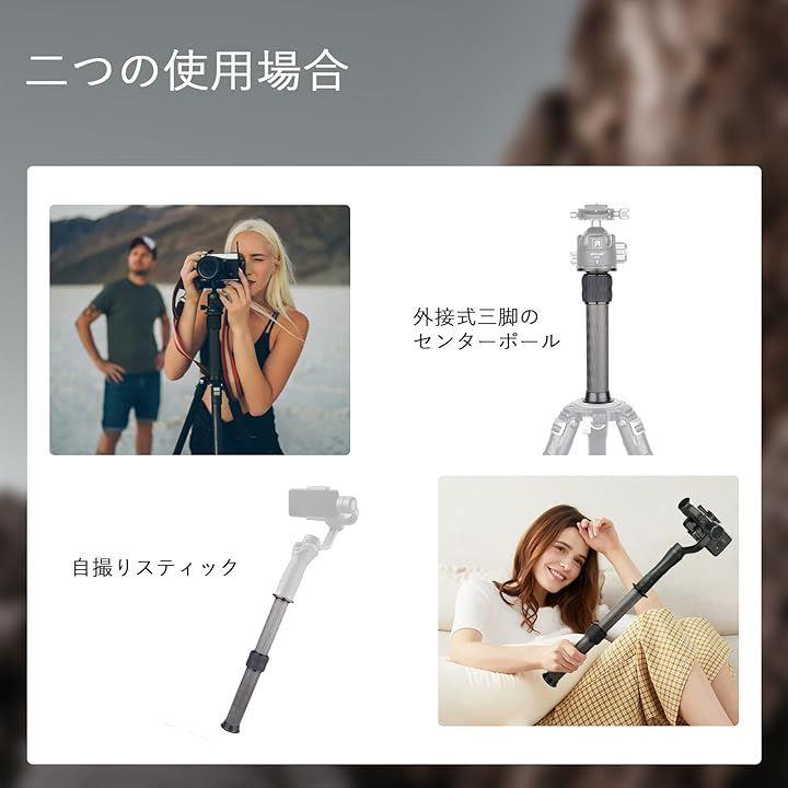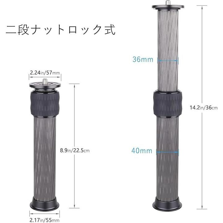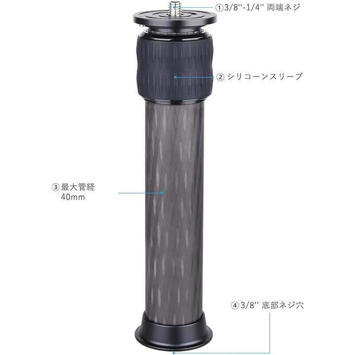 カーボンセンターポール 40mm管経 カーボンファイバー三脚中心軸 アクセサリー 2段伸縮式 エレベーター延長 1/4”-3/8”ネジアダプター付き