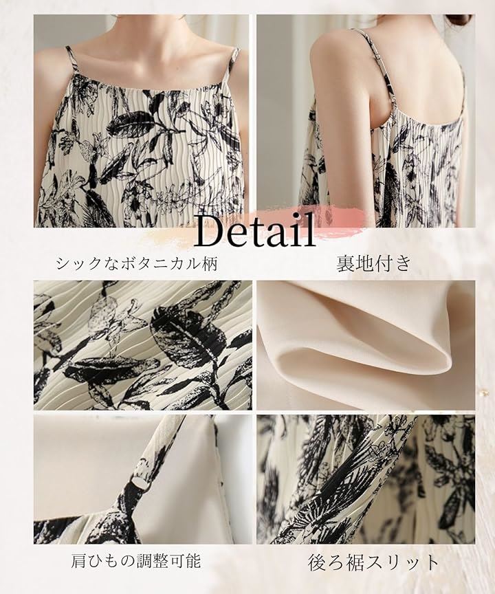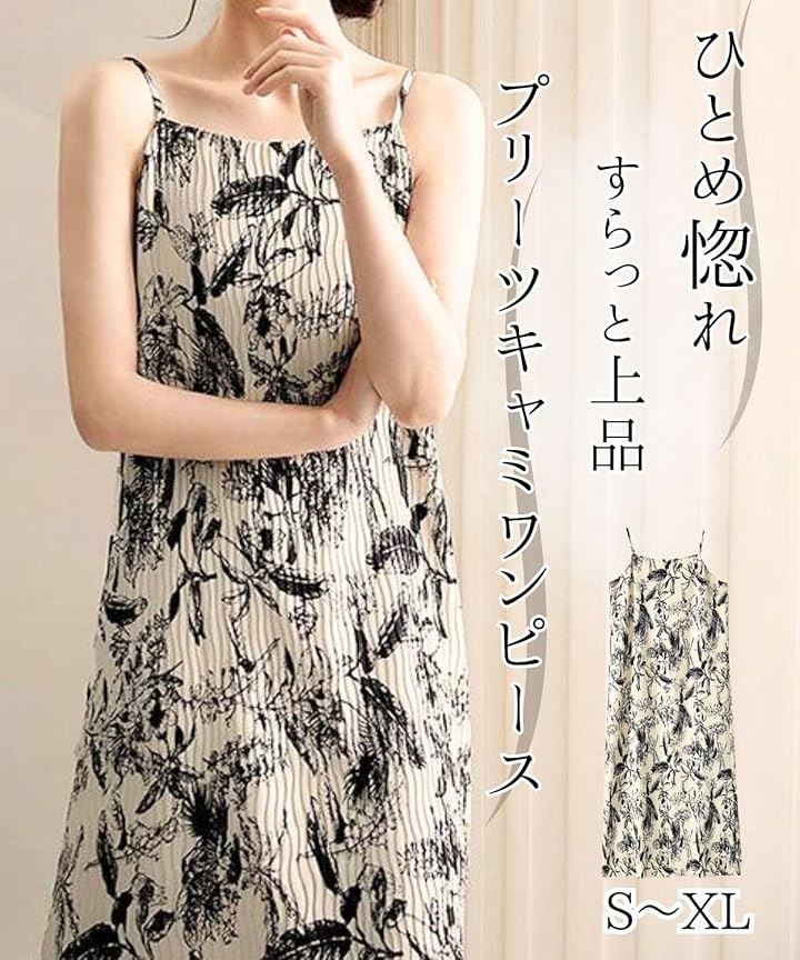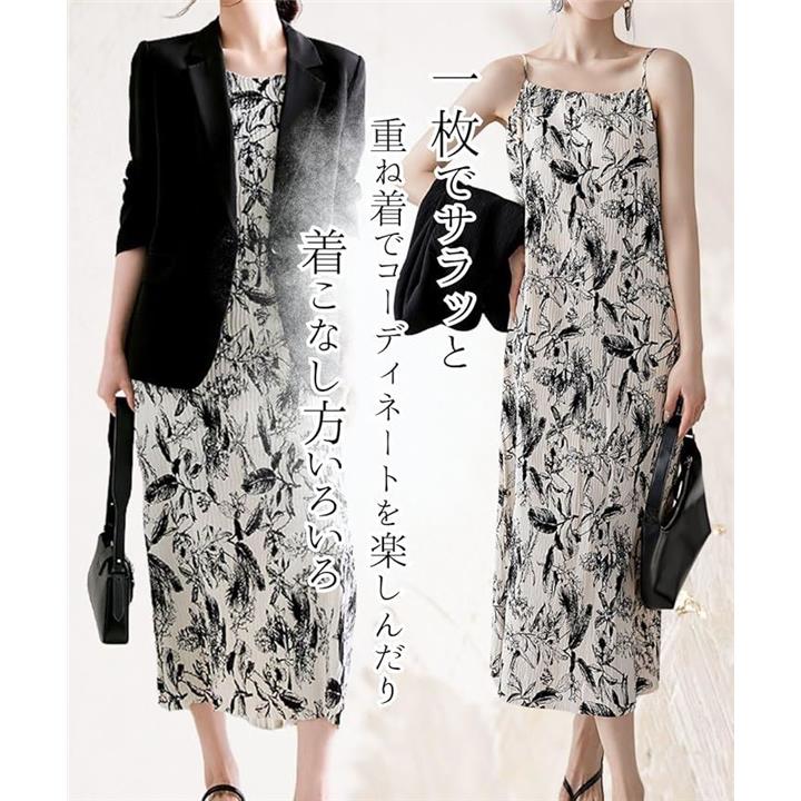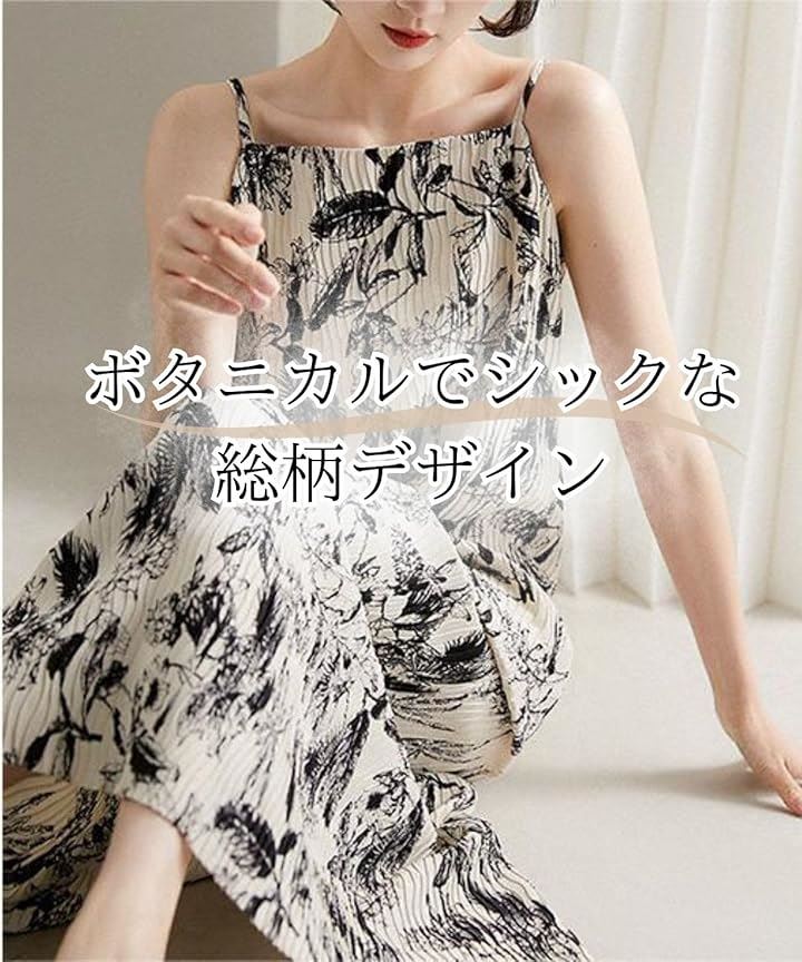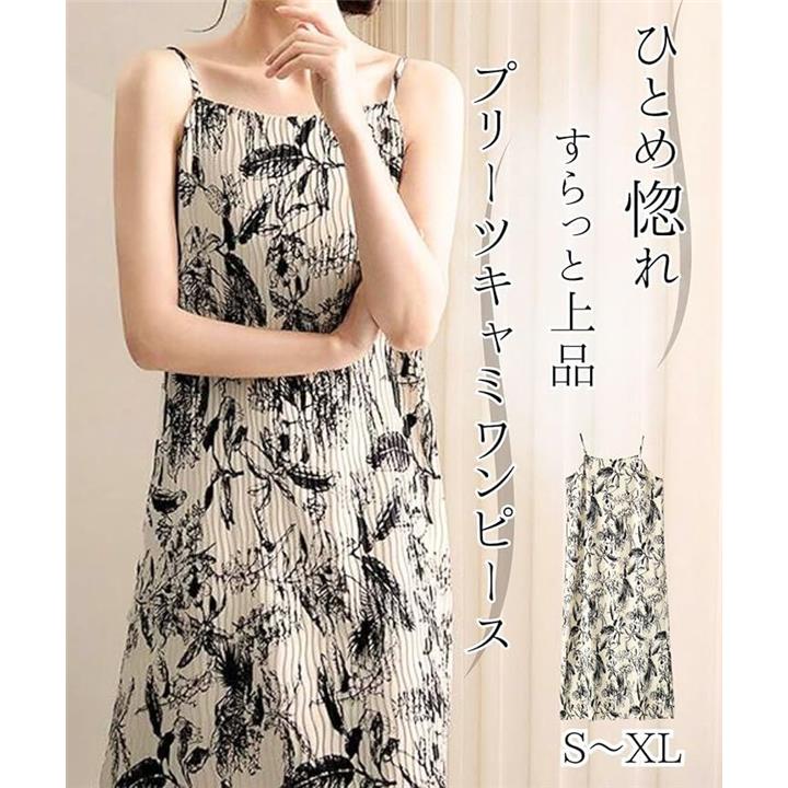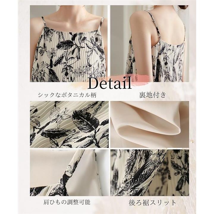 可愛い 上品 キャミワンピース レディース 夏 ロング キャミソール ドレス プリーツ リゾートワンピース ロング丈 ノースリーブ 裏地付き きれいめ