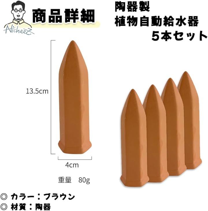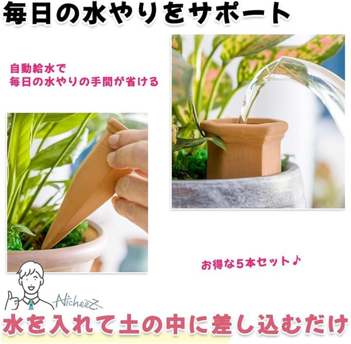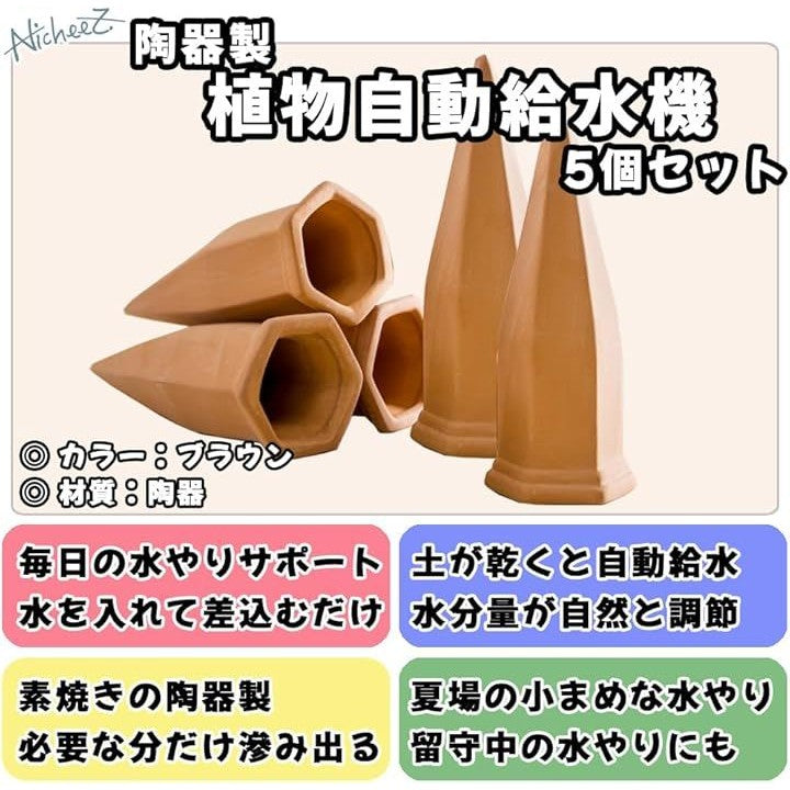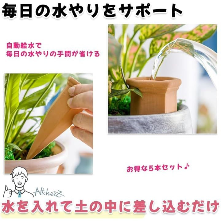 自動水やり器 自動給水機 陶器 挿すだけ 植木 鉢 5本セット