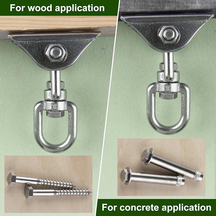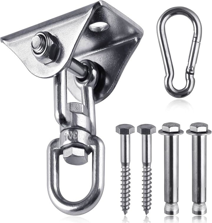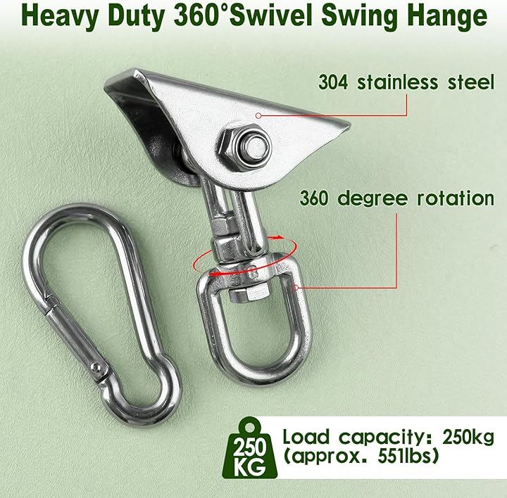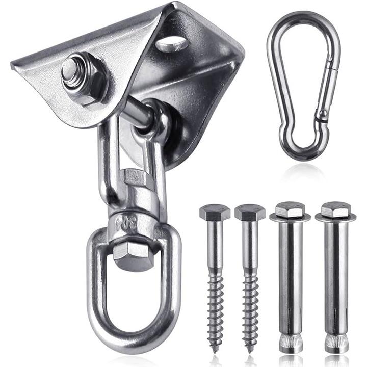 木製コンクリート スイング セット用スイング ハンガー 360°回転 ハンギングチェア用金具 ハンギングキット 天井フック ハンモックフック ボルトネジ付き ロックカラビナ 取付金具 耐荷重250kg