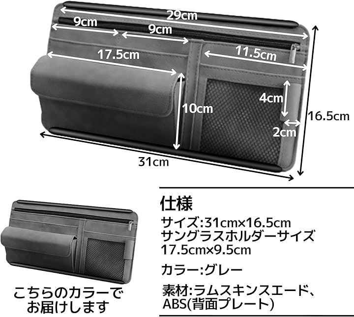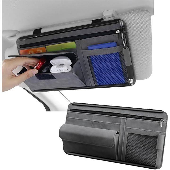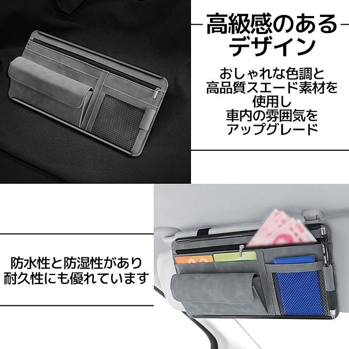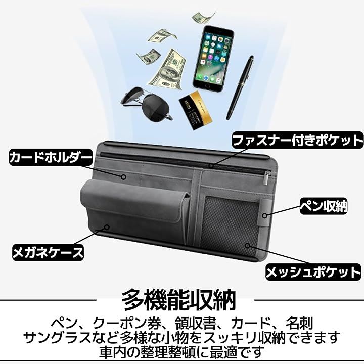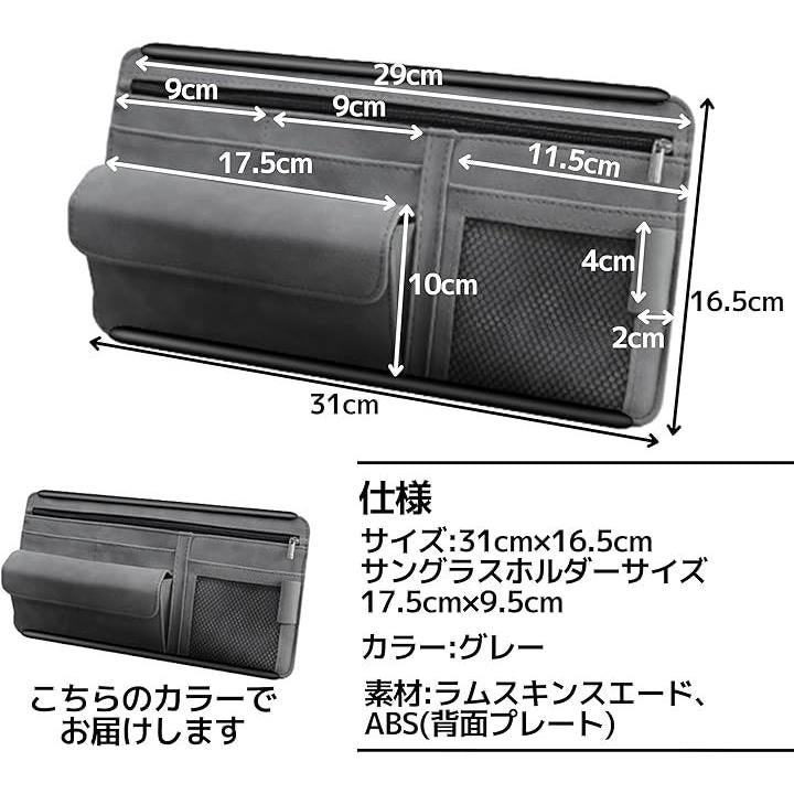 車 サンバイザーポケット サングラスホルダー カード 収納 小物入れ 便利グッズ カー用品 グレー