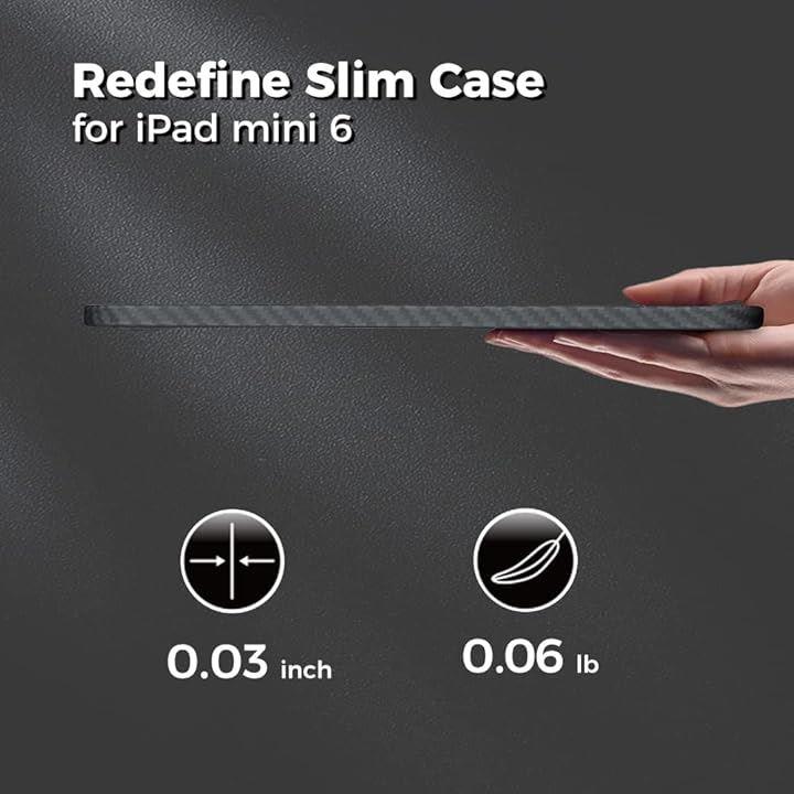リアルカーボンファイバーケース 8.3インチiPad mini 6/7用、耐衝撃&傷防止&薄型&軽量保護ハードカバー 2021 第6世代/ 2024