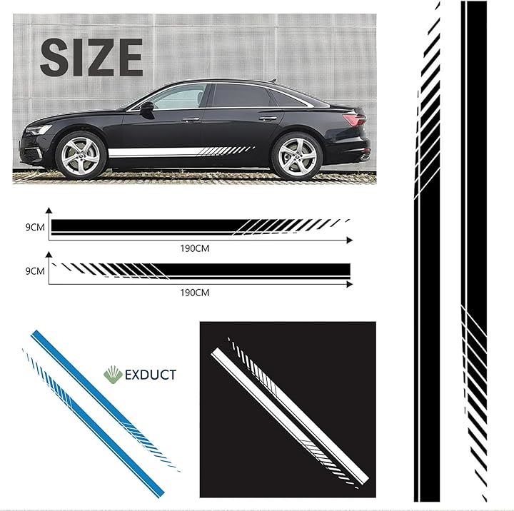 互換品 ステッカー デカール ストライプ サイドステッカー スポーティー 車 汎用 カスタム 190cm