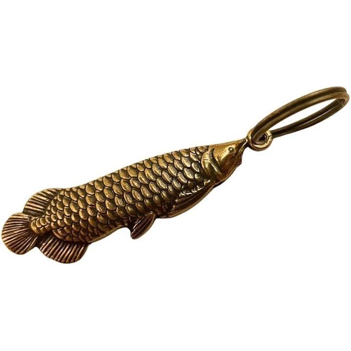 キーホルダー 魚 フィッシュ 真鍮 アンティーク ストラップ アロワナ 風水 金運 アクセサリー ペンダント 縁起物 ペンダントトップ 龍魚
