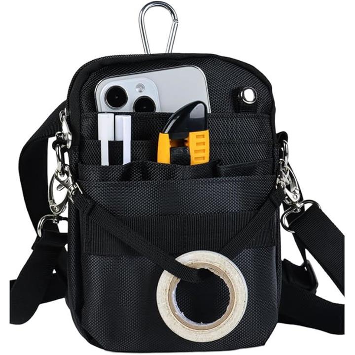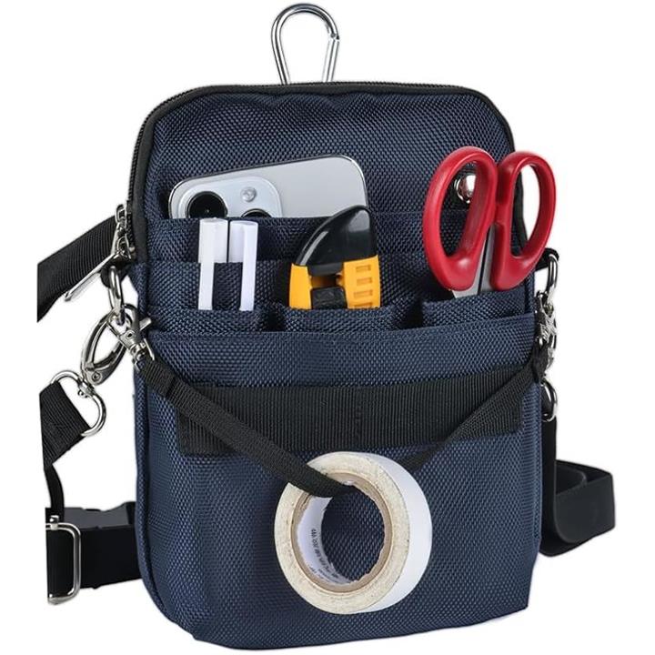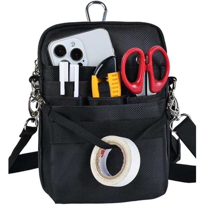 多機能 エプロンバッグ ナースポーチ ウエストバッグ ダブルジッパー 3way マチ付き 文具 工具 スマホ 作業用 業務用 看護 介護 事務 ベルト付き 撥水 防傷 12ポケット 引っ掛け帯付き M