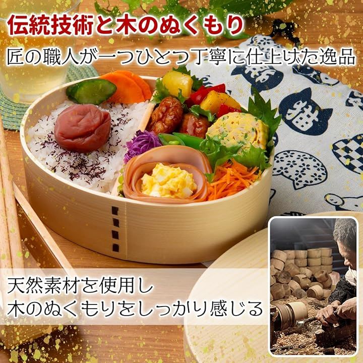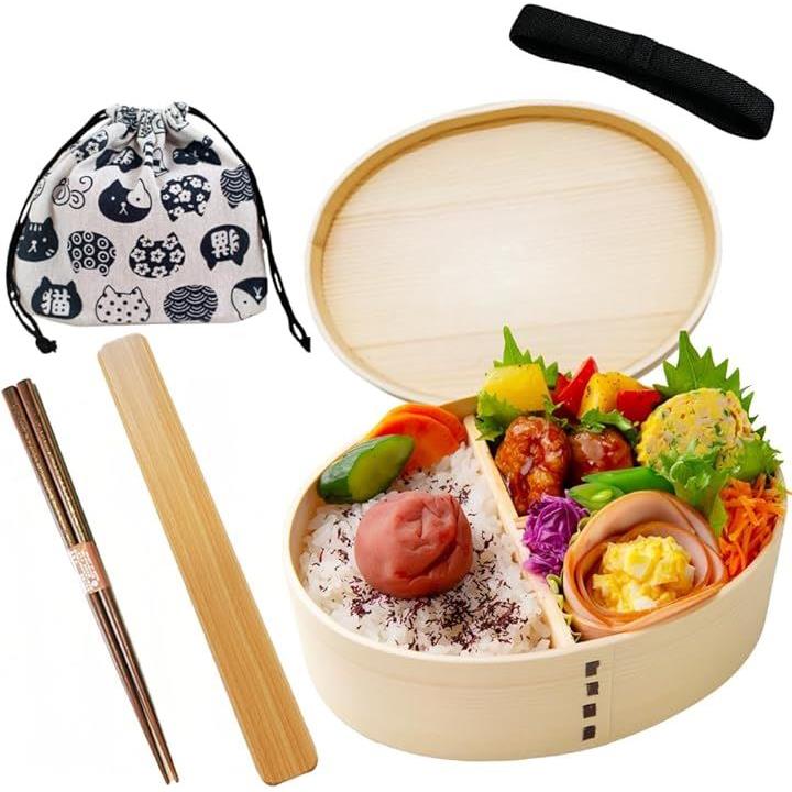 曲げわっぱ 白木調 柳杉 弁当箱 一式セット 抗菌 保湿 (キャット) |