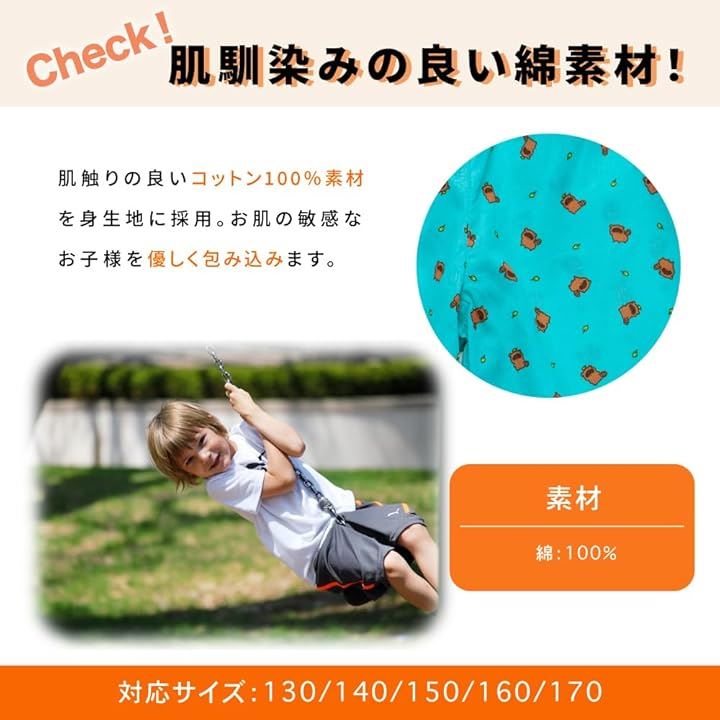 「素材」コットン100% 「サイズ」130:ウエスト53~59cm 140:ウエスト54~62cm 150:ウエスト58~66cm 160:ウエスト62~70cm 170:ウエスト66~74cm