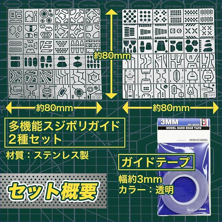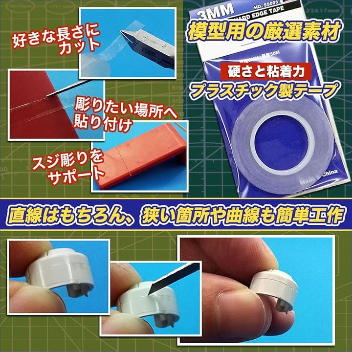スジボリ テンプレート 2種 ガイドテープ 3mm 筋彫り プラモデル 工具