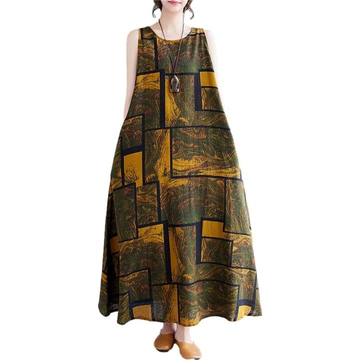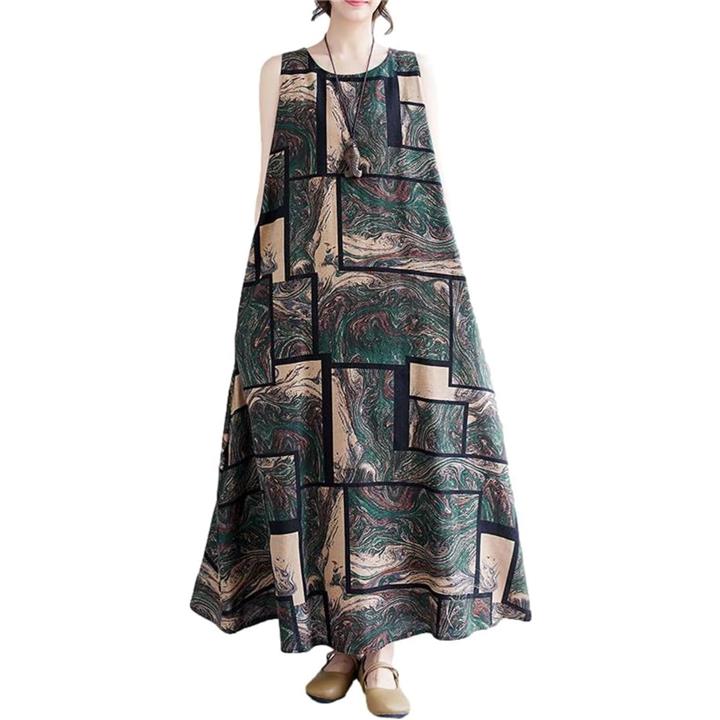 [J-Scott] ワンピース レディース ロング ノースリーブ 幾何学 アースカラー Aライン ゆったり JS145 |