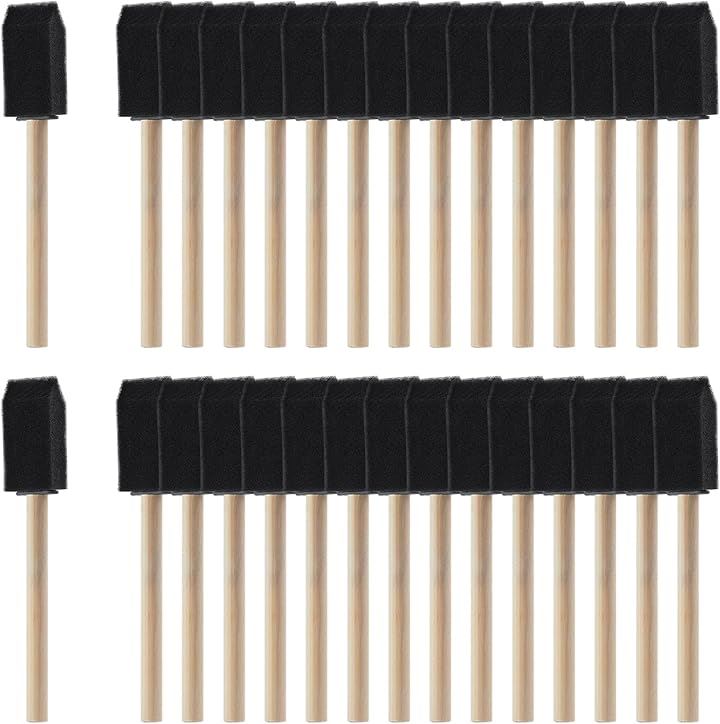 1インチ 30個 発泡ペイントブラシ フォームペイントブラシ スポンジブラシ 発泡ブラシ 塗装用発泡ブラシ 染色用発泡ブラシ ペイントスポンジ フォームブラシ フォームスポンジ木製ハンドル絵筆セット ウッドステインブラシ モッド用フォームブラシ