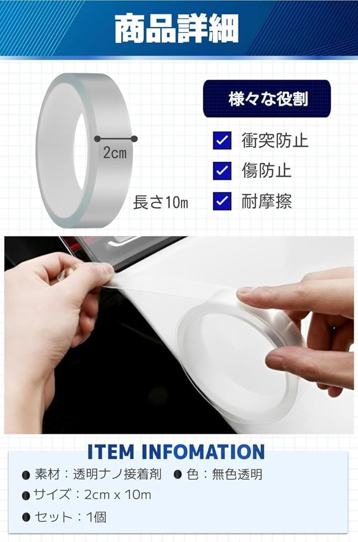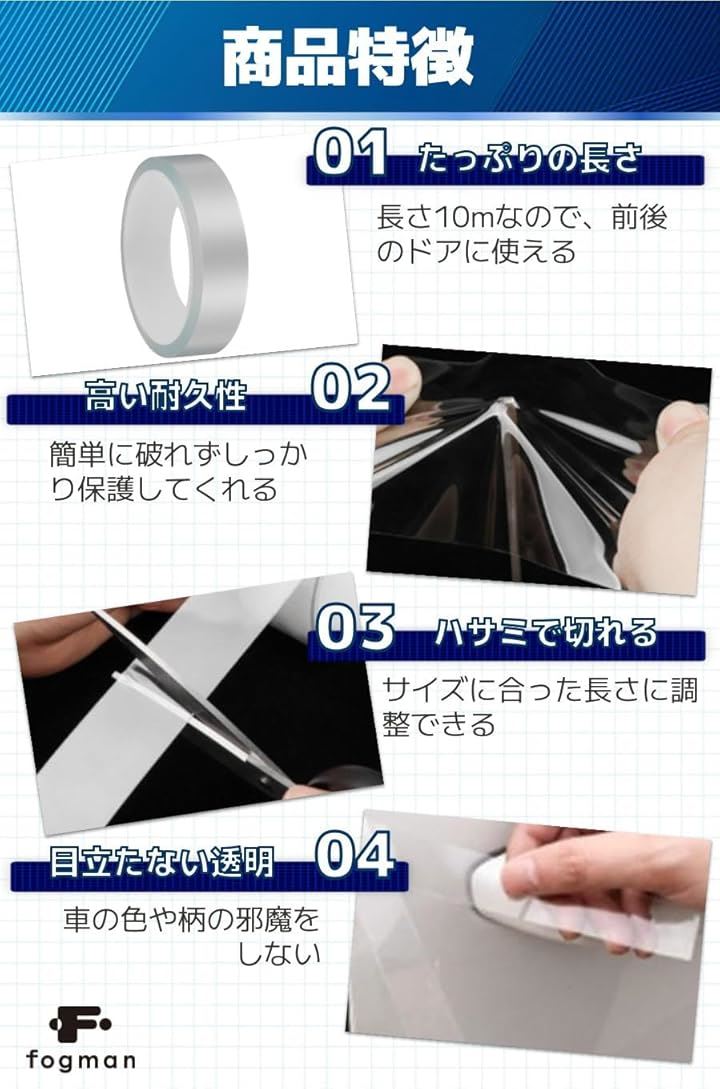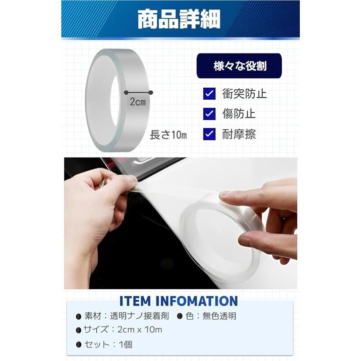 プロテクションフィルム 車 ドアエッジプロテクター 傷防止テープ 2cmx10m