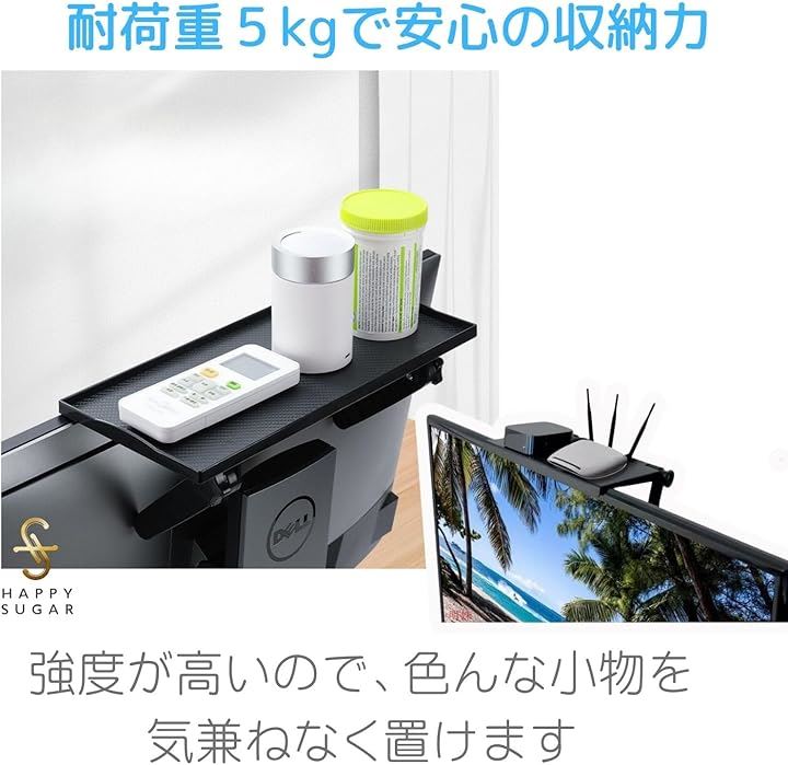 ディスプレイボード 棚 上 小物置き モニター テレビ裏収納ラック リモコン置き 机 拡張 後付け 耐荷重5kg