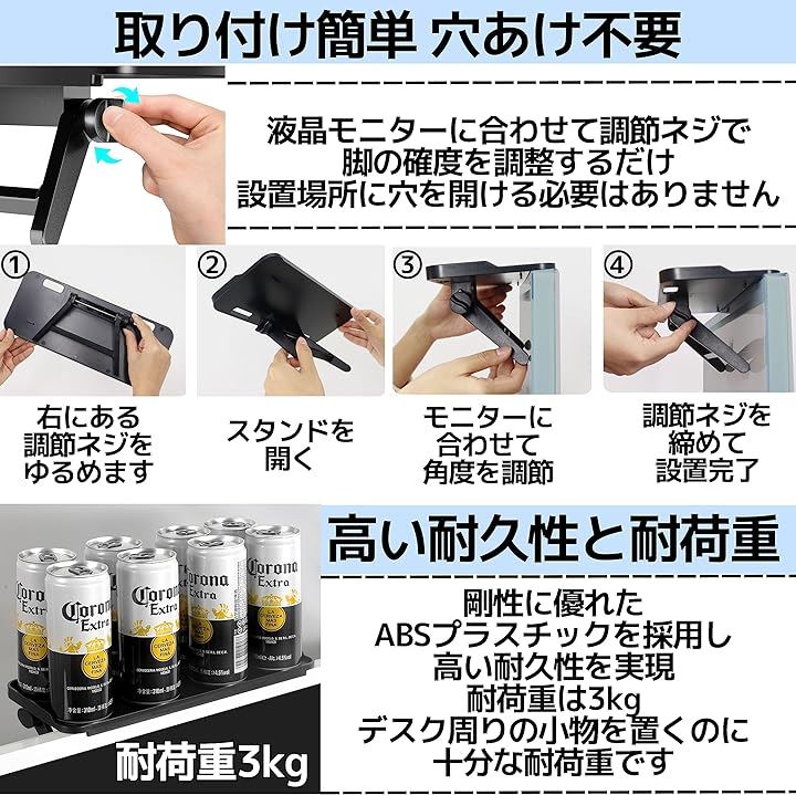 棚 シェルフ 小物収納 取り付け簡単 幅30cm x奥行12.5cm 耐荷重3kg ブラック