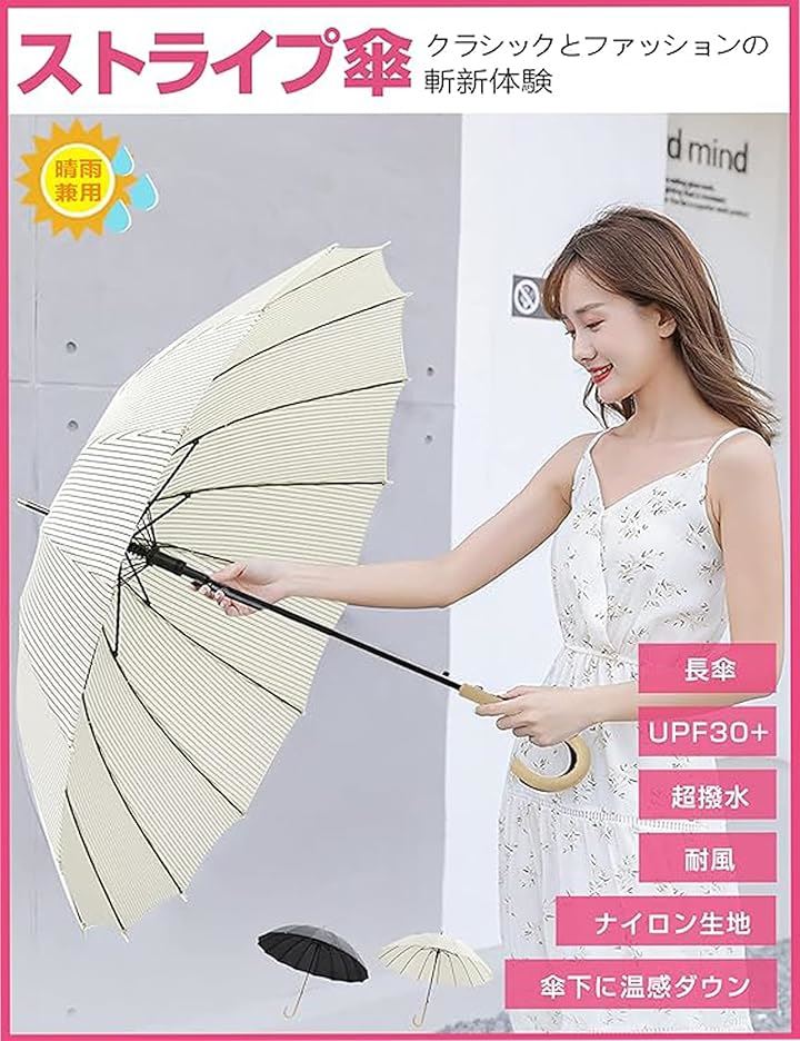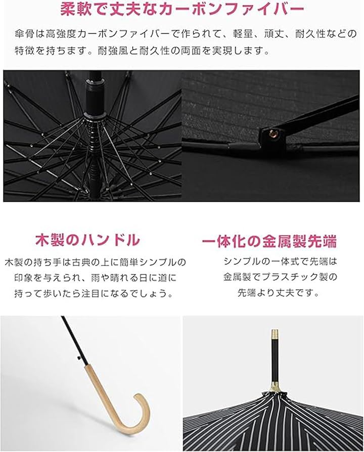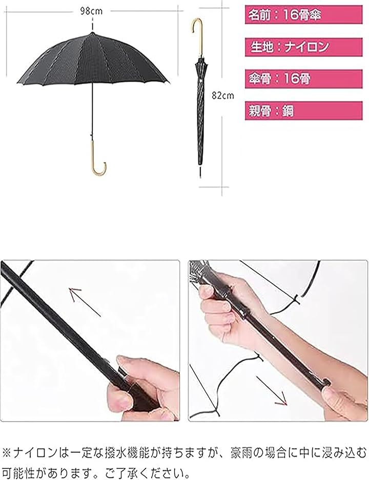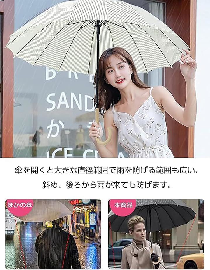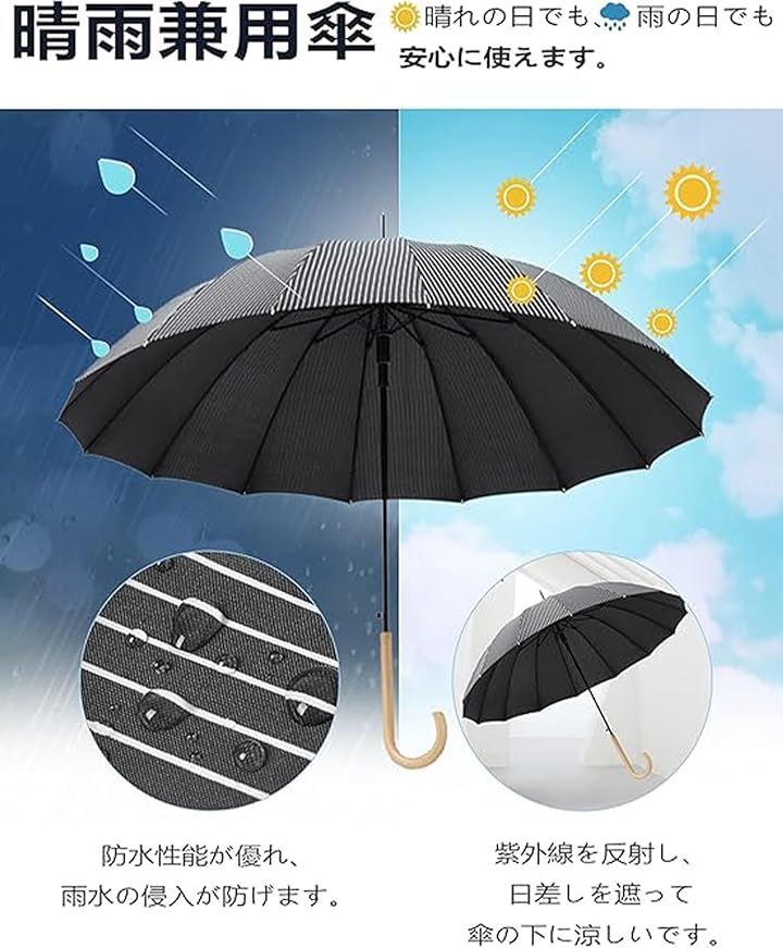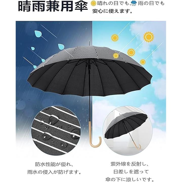 傘 長傘 紳士傘 メンズ 16本骨 ワンタッチ開き 梅雨対策 ジャンプ傘 レディース 晴雨兼用 丈夫 撥水 耐風