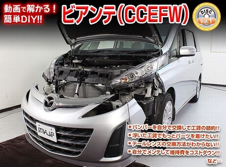 ・電球交換解説(バルブ・ウィンカーランプなど)バンパー交換方法・ヘッドライト交換方法・フロンドドア内張り脱着方法などなど、ビアンテ(CCEFW) のメンテナンス・各種パーツ交換方法・脱着方法を解説したDVD。