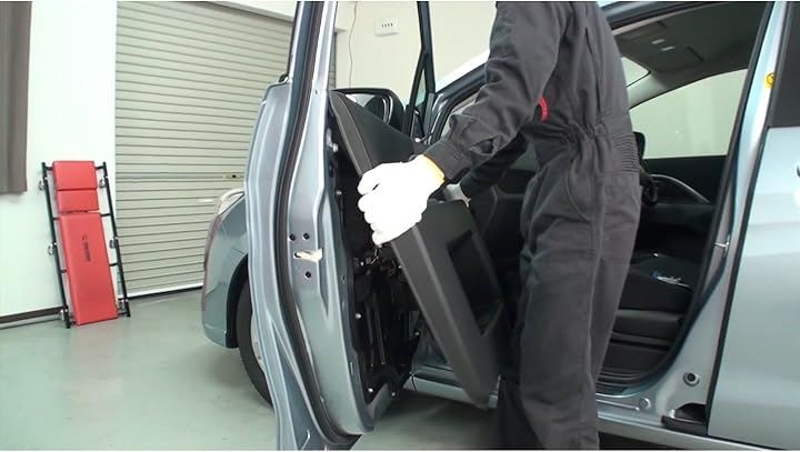 18. ヒューズ脱着方法 19. オーディオパネル脱着方法 20. フロントドア内張り脱着方法 21. フロントスピーカー脱着方法 22. スライドドア内張り脱着方法 23. リアスピーカー脱着方法 24. トランクドア内張り脱着方法 25. ルームランプ脱着方法 26. サンバイザー脱着方法 27. サイドスカッフ脱着方法 28. キーリモコン電池脱着方法 29. 工具紹介