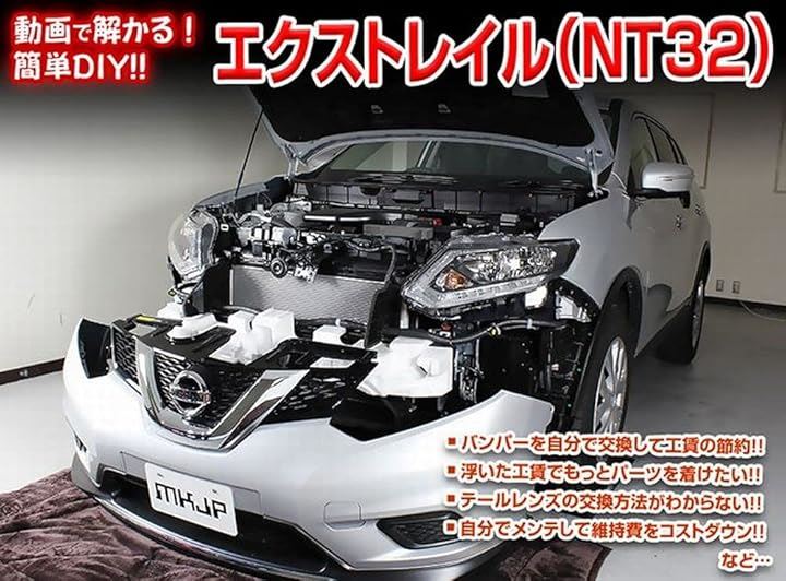 ・電球交換解説(バルブ・ウィンカーランプなど)バンパー交換方法・ヘッドライト交換方法・フロンドドア内張り脱着方法などなど、エクストレイル(NT32) のメンテナンス・各種パーツ交換方法・脱着方法を解説したDVD。