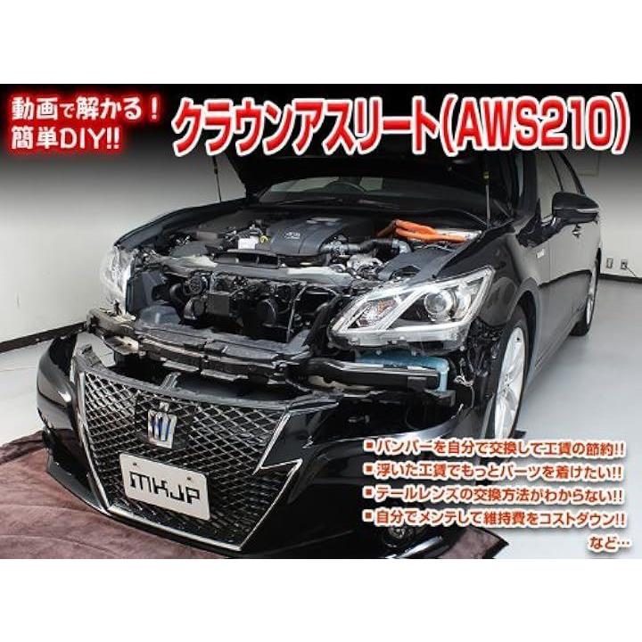 クラウンアスリート(AWS210) DVD収録内容*外装関連*1. フロントバンパー脱着方法 2. リアバンパー脱着方法 3. ヘッドライトユニット脱着方法 4. テールライトユニット脱着方法 5. リアライトユニット脱着方法 6. ヘッドライトランプ(ロー・ハイ)脱着方法 7. フロントウィンカーランプ脱着方法 8. リアランプ類脱着方法 9. ライセンスランプ脱着方法 10. サイドミラー脱着方法 11. エアクリフィルター脱着方法 12. ワイパー(ゴム・ブレード)脱着方法 13. ホーン脱着方法 14. ヒューズ脱着方法 15. バッテリーマイナス端子絶縁方法 16. バッテリー脱着方法