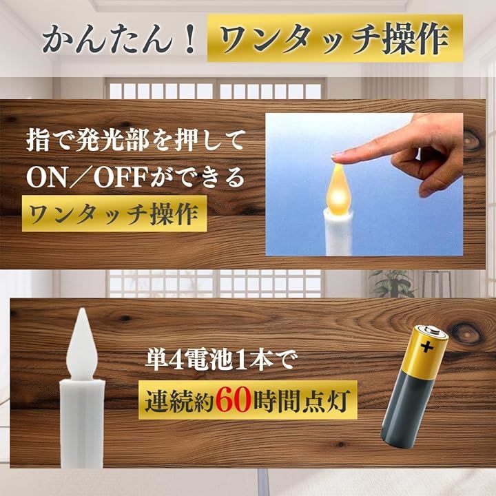 揺らめき 専用ホルダー付き LED 電気ろうそく 単4電池付き 炎のようなゆらめき