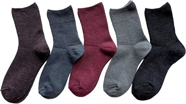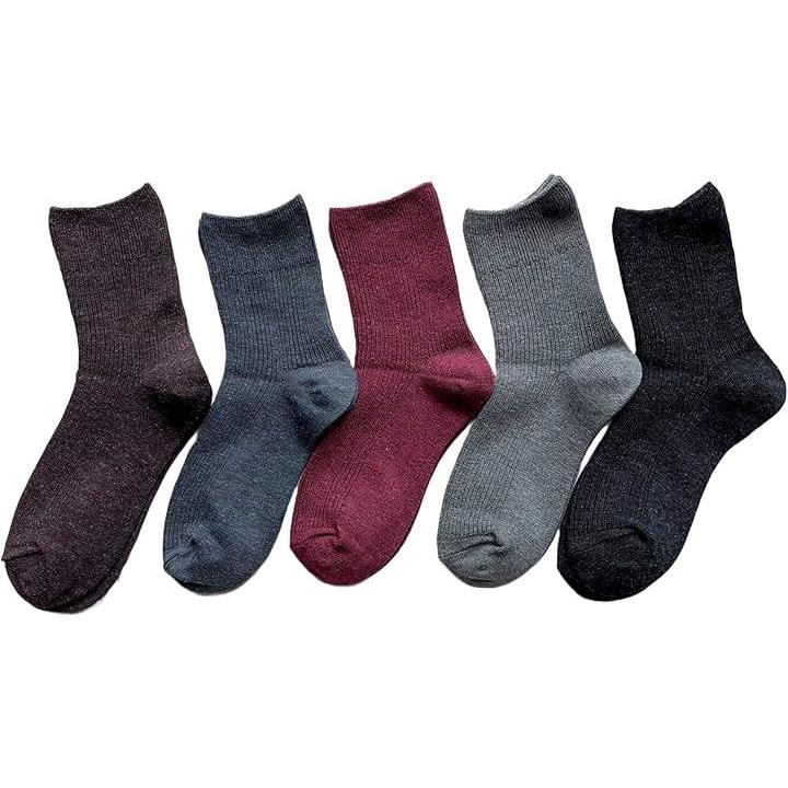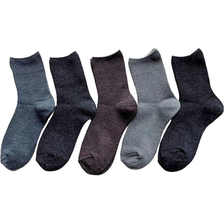 靴下 レディース あったか ふんわり毛混 ウール混 口ゴムゆったり お買得5足組 色はお任せ C34