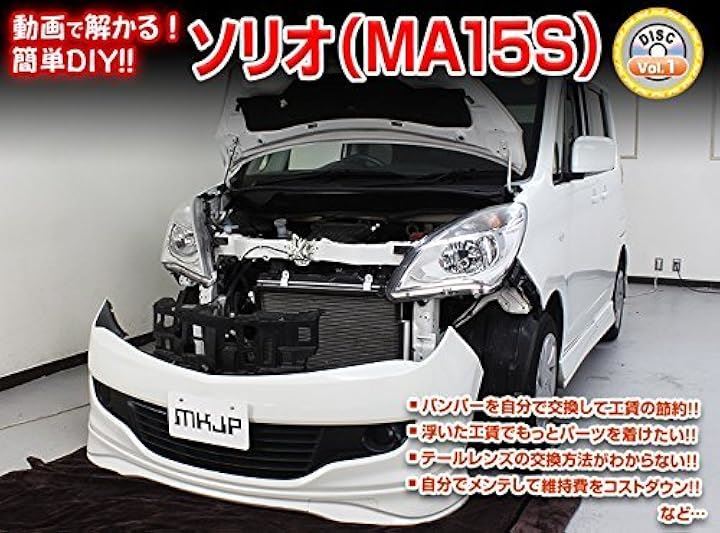 ソリオ(MA15S) メンテナンスオールインワンDVD 内装&外装セット・ルームランプ交換方法、ライト交換方法・ フロント(リア)バンパー交換方法・内張り交換方法などなど、ソリオ(MA15S)の 各種パーツの取外し方法や取付け方法、改造やチューニングを解説したDVD。