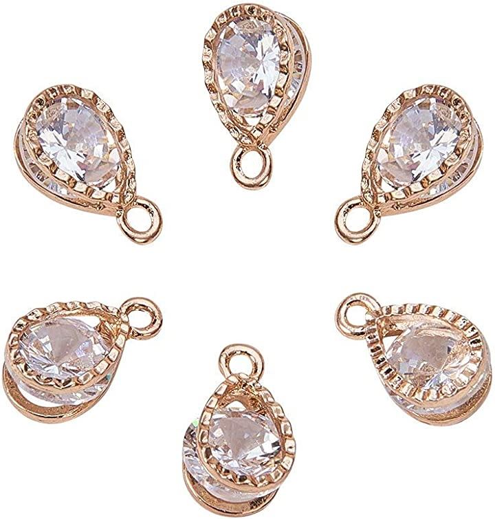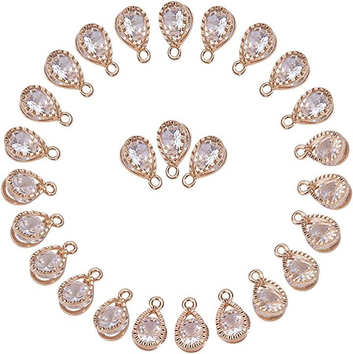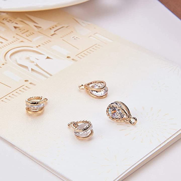 PandaHall 約100個セット おしゃれ ダイヤ型 ガラスストーン入り チャーム ロップ型 しずく ゴールド
